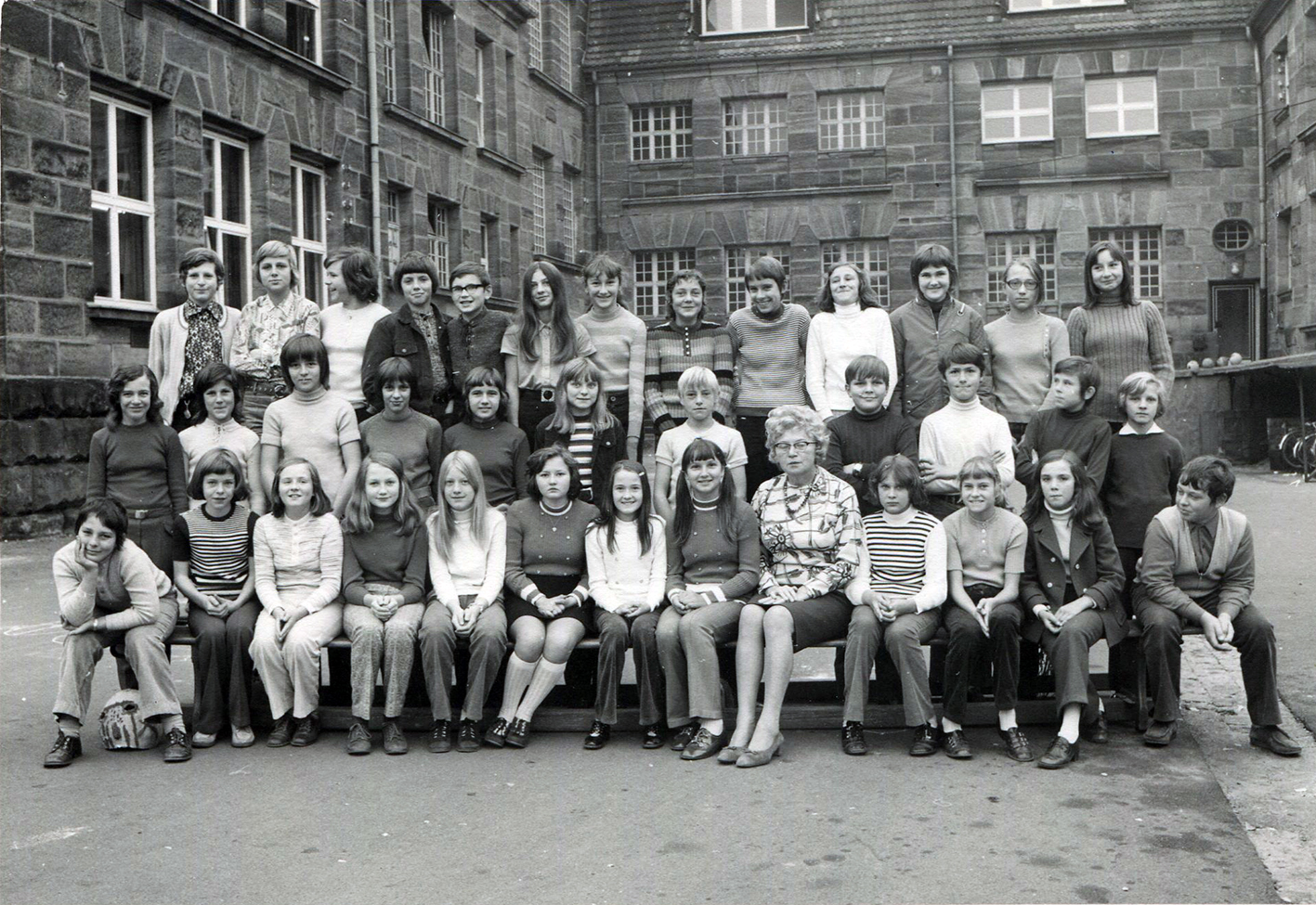 | Beschreibung | Schulklasse 6b im Jahr 1972/73 am Helene-Lange-Gymnasium in der Tannenstraße. In der Bildmitte Oberstudienrätin Paula-Luise Baer | ||