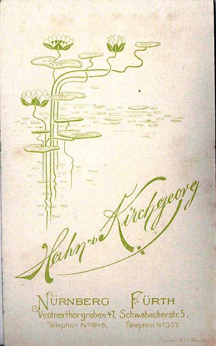 | Dateiinfo (Bild-Unterschrift und Info-Box, automatisch erstellt) | Rückseite einer Fotografie aus der Jahrhundertwende Urheber: Hahn & Kirchgeorg<br><br>Lizenz: CC BY-SA 3.0 | ||
