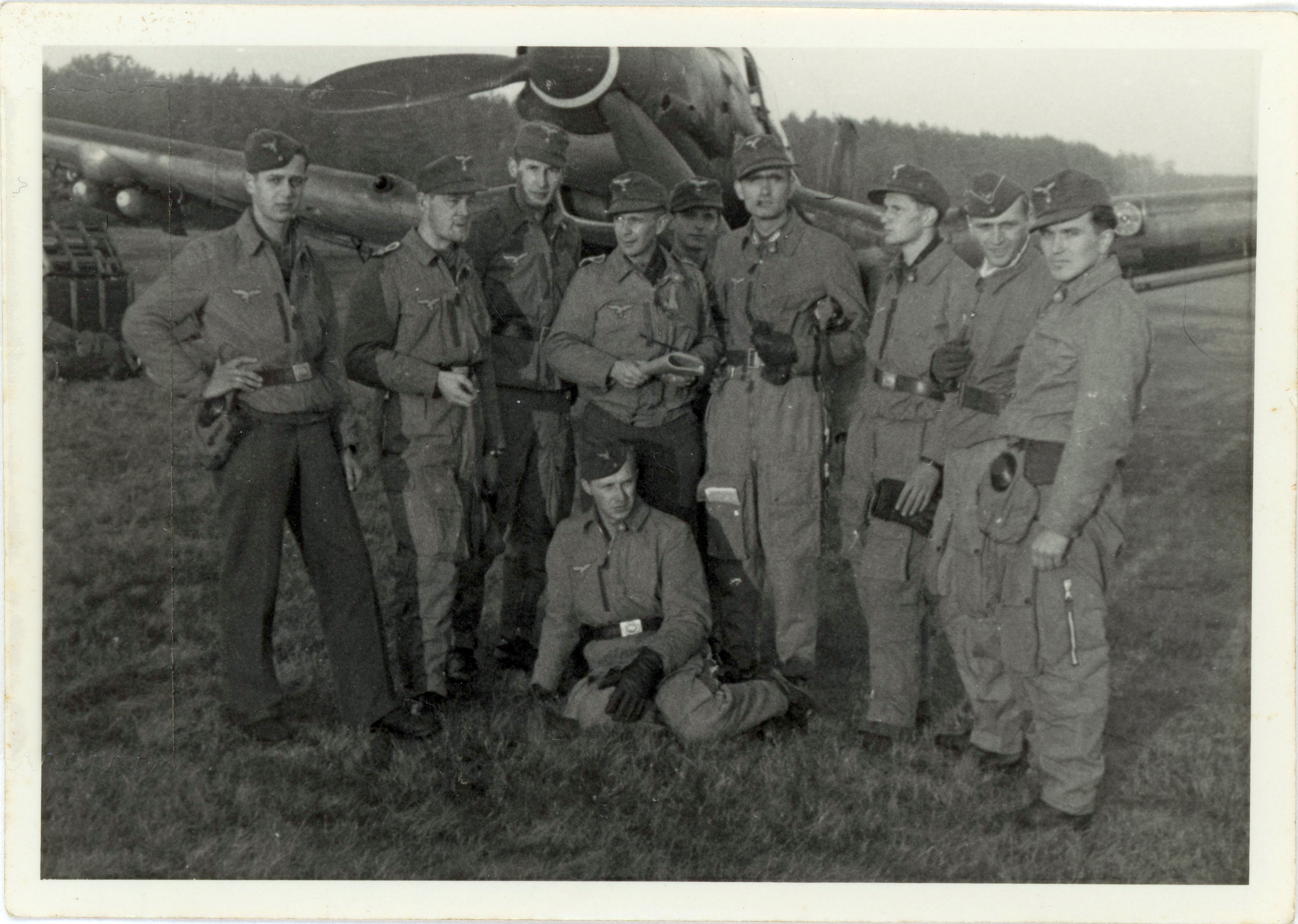 | Beschreibung | Pilot Hans Hautsch mit weiteren Soldaten vor einer Junkers Ju 87, Okt. 1944 | ||