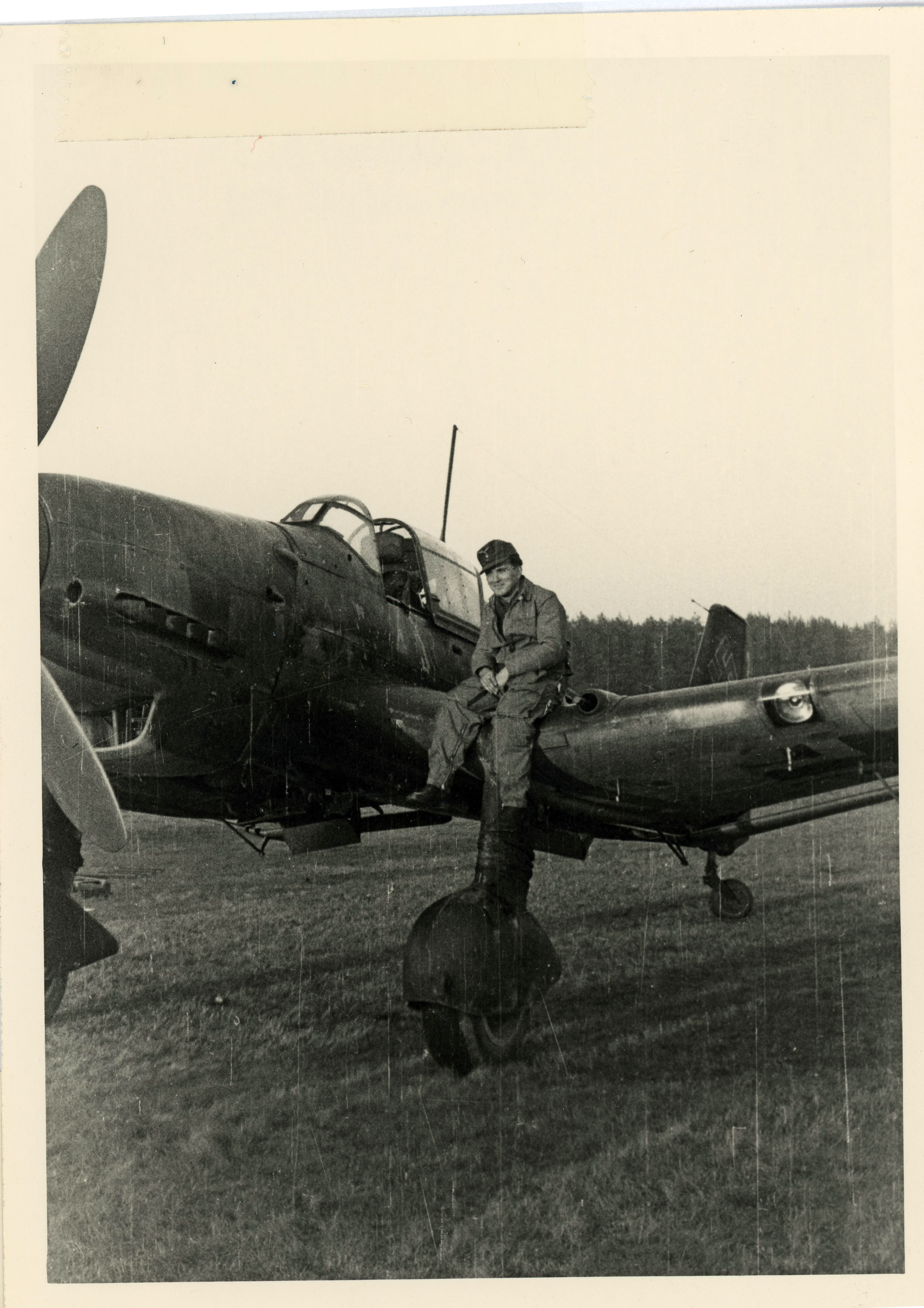 | Beschreibung | Pilot Hans Hautsch vor seiner Junkers Ju 87, Okt. 1944 | ||