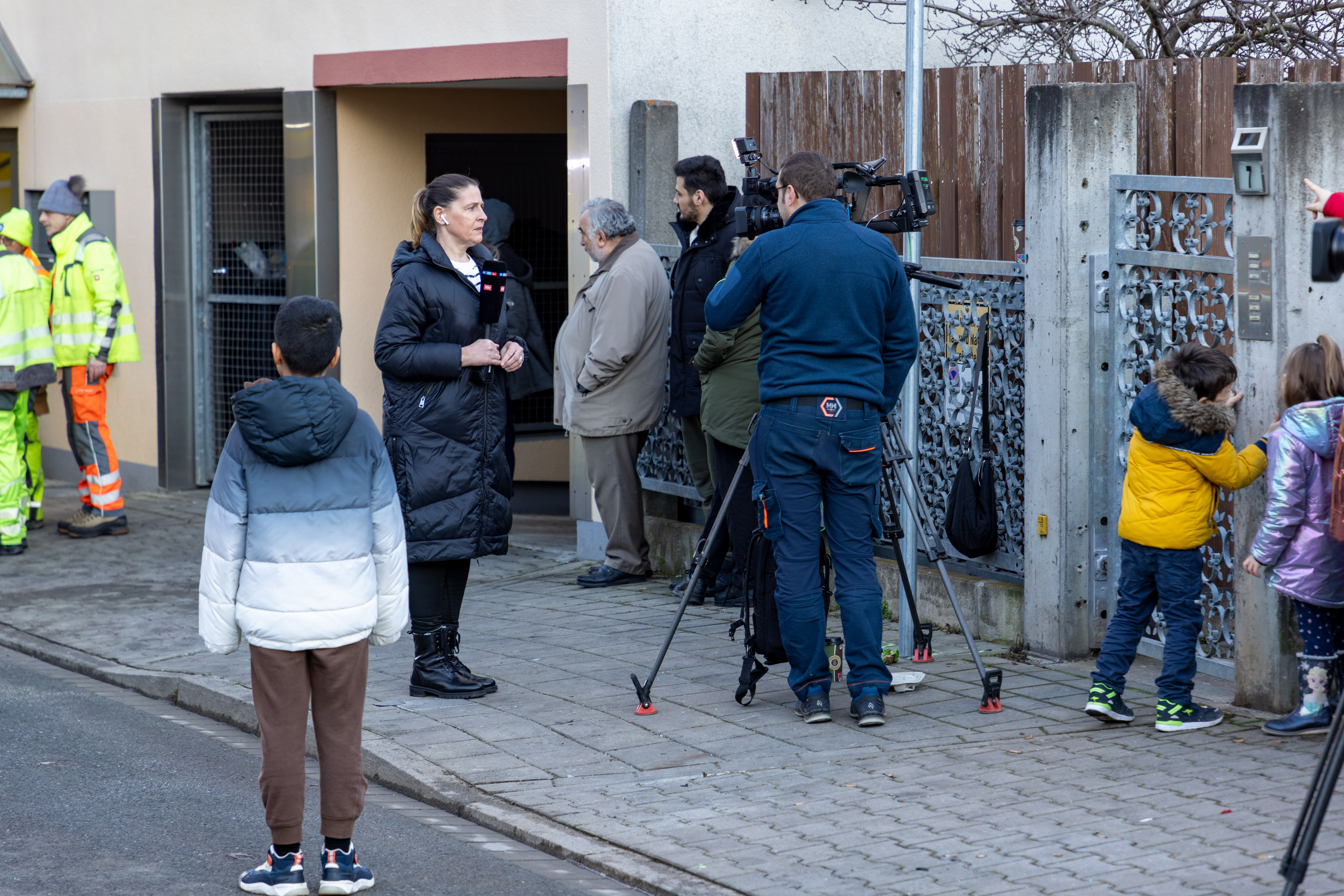 | Beschreibung | Fernsehteams vor dem Unfallort in der Hardstraße nach dem LKW-Unfall in der Hardstraße, Feb. 2022 | ||
