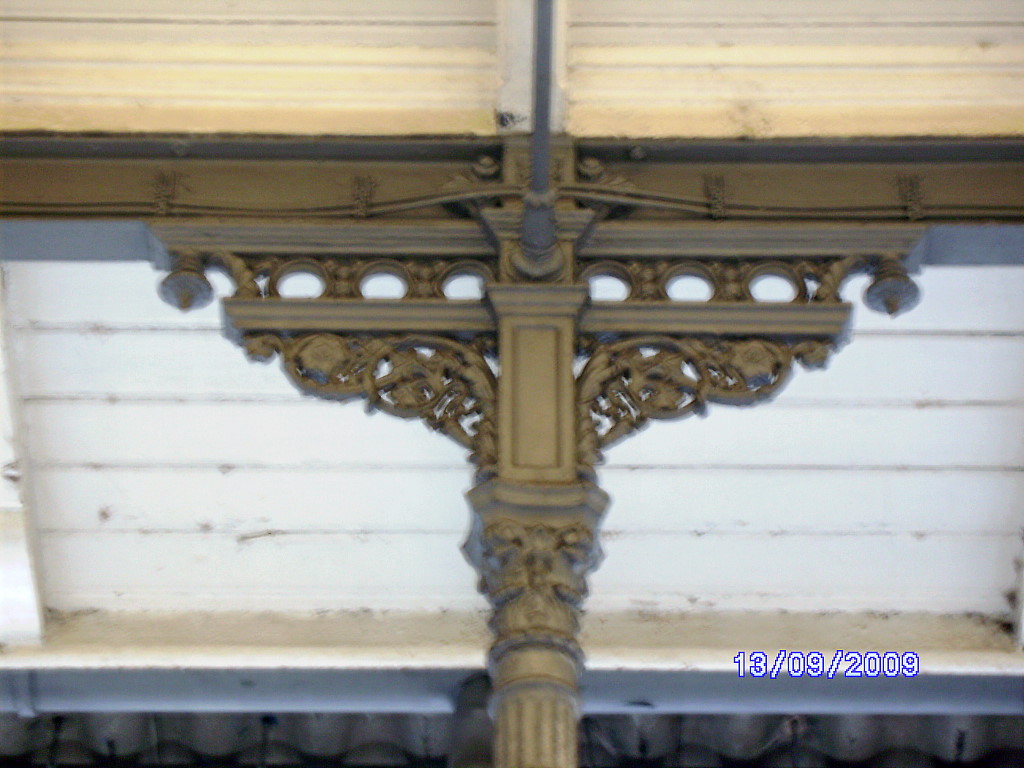 | Beschreibung | Detail einer Gusssäule aus der ersten Reihe des ehemaligen Bahnsteigs 1 | ||