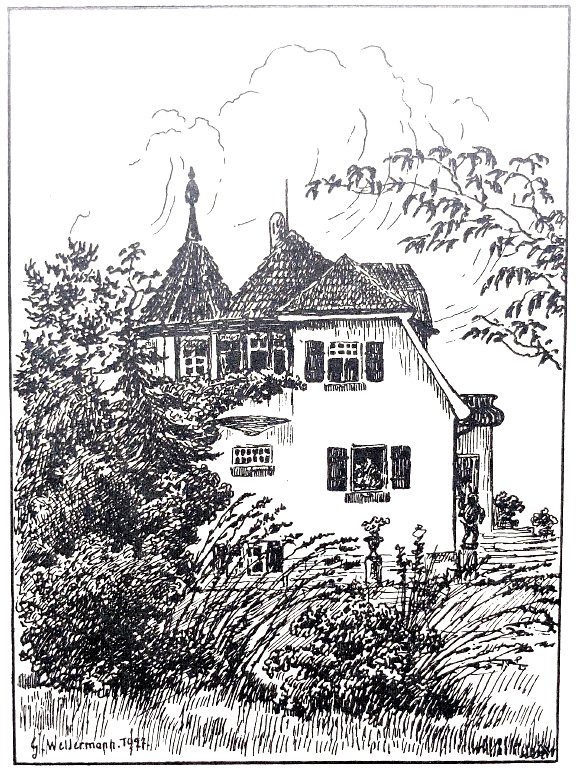 | Beschreibung | Künstlerpostkarte, signiert mit G. Wellermann, 1927. Rückseitig beschriftet mit "Haus Cäcil Fürth-Oberfürberg" | ||