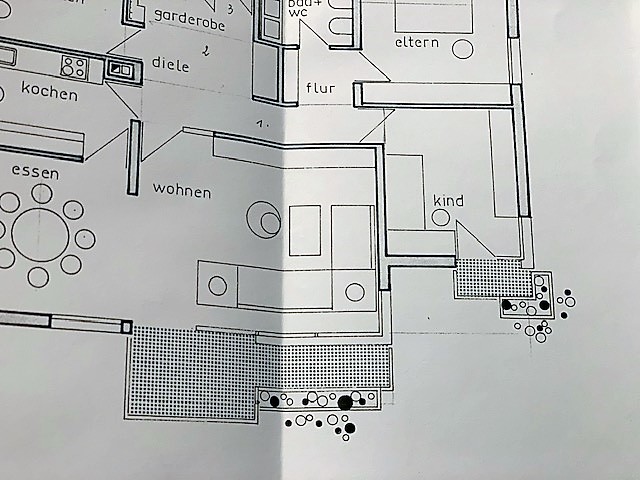| Dateiinfo (Bild-Unterschrift und Info-Box, automatisch erstellt) | Ausschnitt eines Planes vom Architekturbüro Heinrich Graber von 1971 mit rigoroser Kleinschreibung ... Ausschnitt eines Planes vom Architekturbüro Heinrich Graber von 1971 mit rigoroser Kleinschreibung (wie der gesamte Schriftverkehr von ihm) – Graber-Stil: kein Balkon ohne Sichtbeton-Pflanzentrog<br>Urheber: Architekturbüro Heinrich Graber<br><br>Lizenz: CC BY-SA 3.0 | ||
