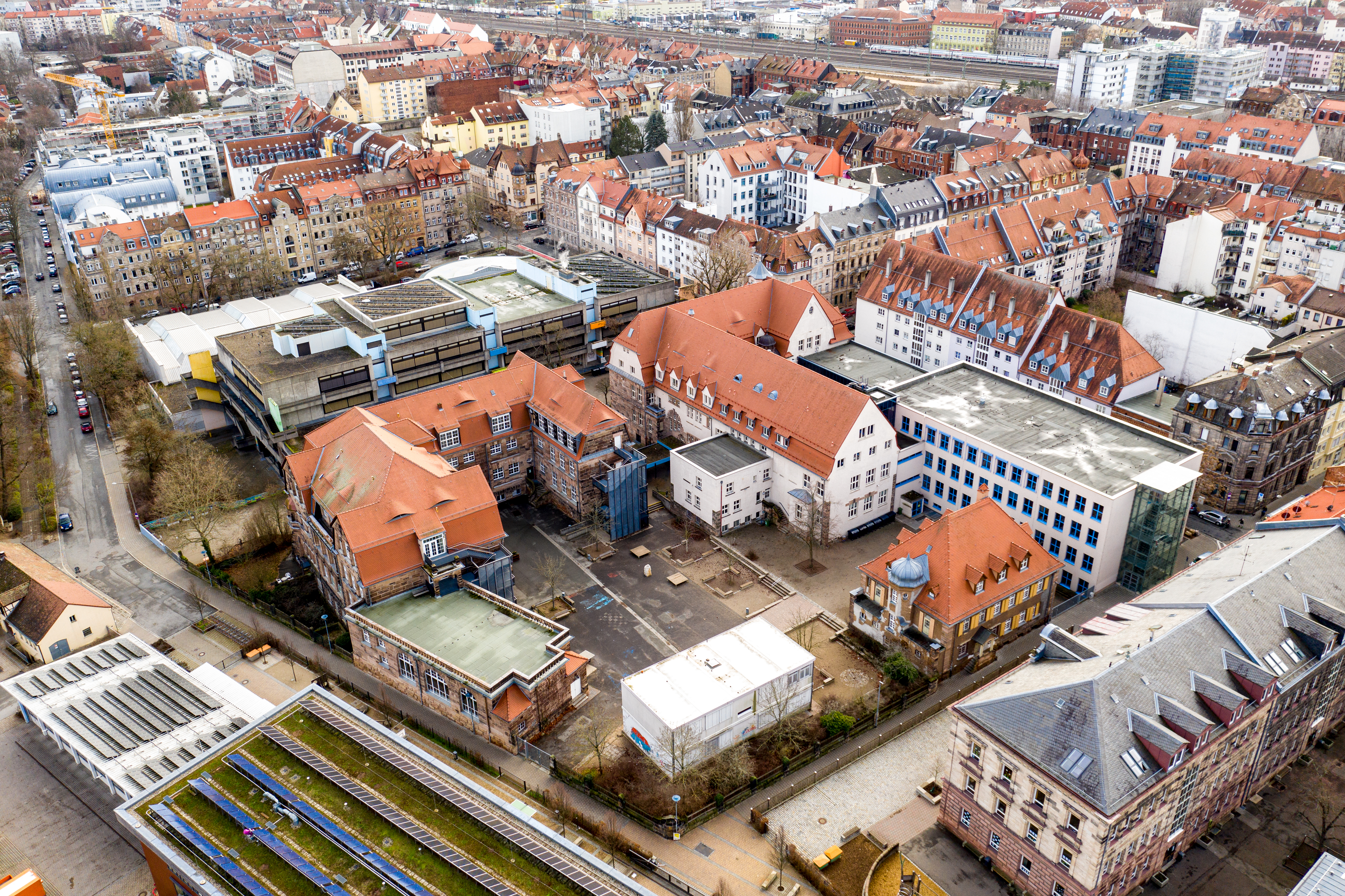 | Beschreibung | Die Leopold-Ullstein-Realschule und Maischule, sowie die Krautheimer-Krippe - im Hintergrund das Helene-Lange-Gymnasium; Jan. 2020 | ||