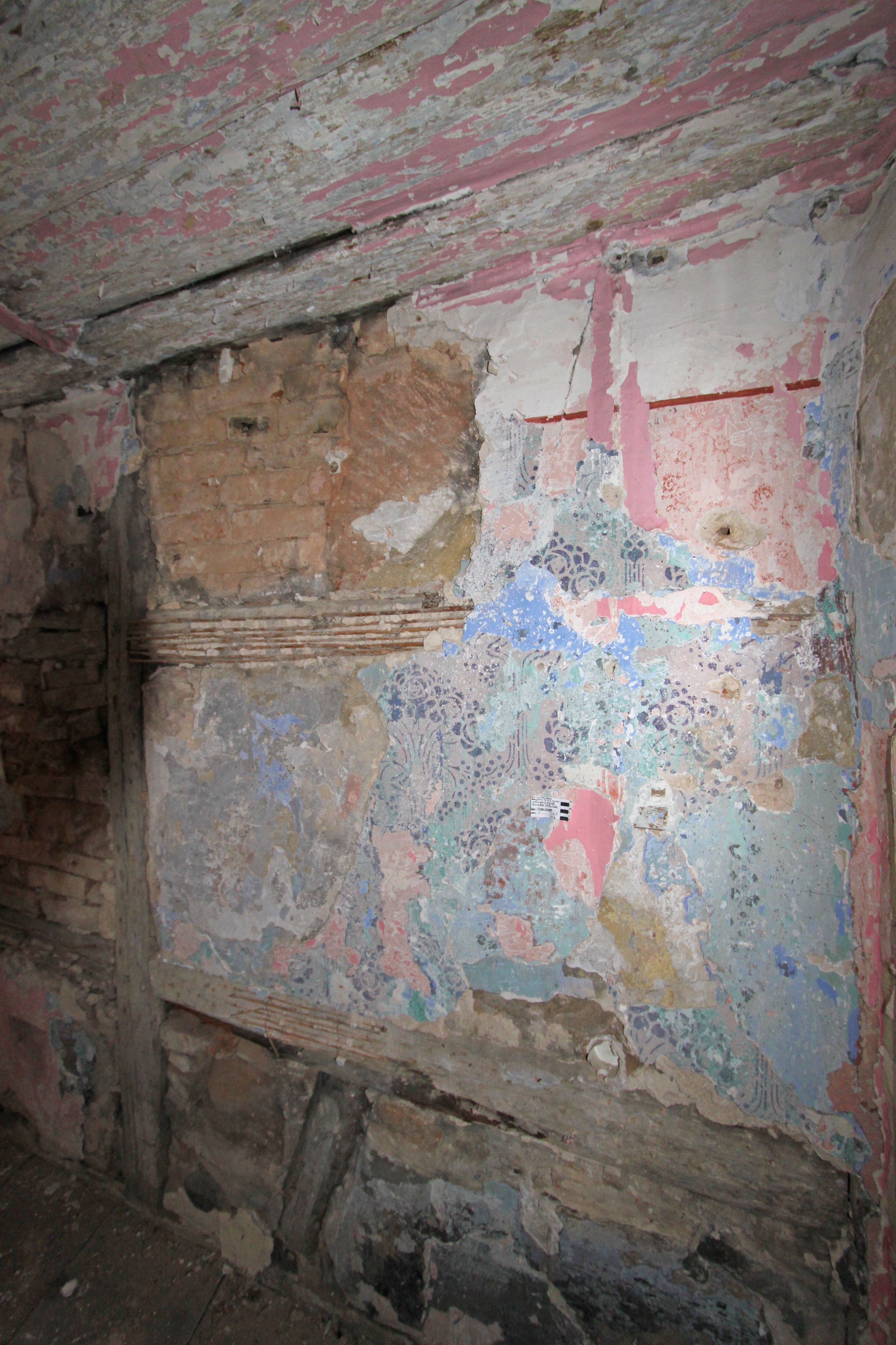 | Beschreibung | Historischer Putz in der ehem. Gaststätte Zum Silberfischla in der Helmstraße 5 während Renovierung/Umbau 2013 (2. Durchgang nach der gescheiterten Renovierung 2008) | ||
