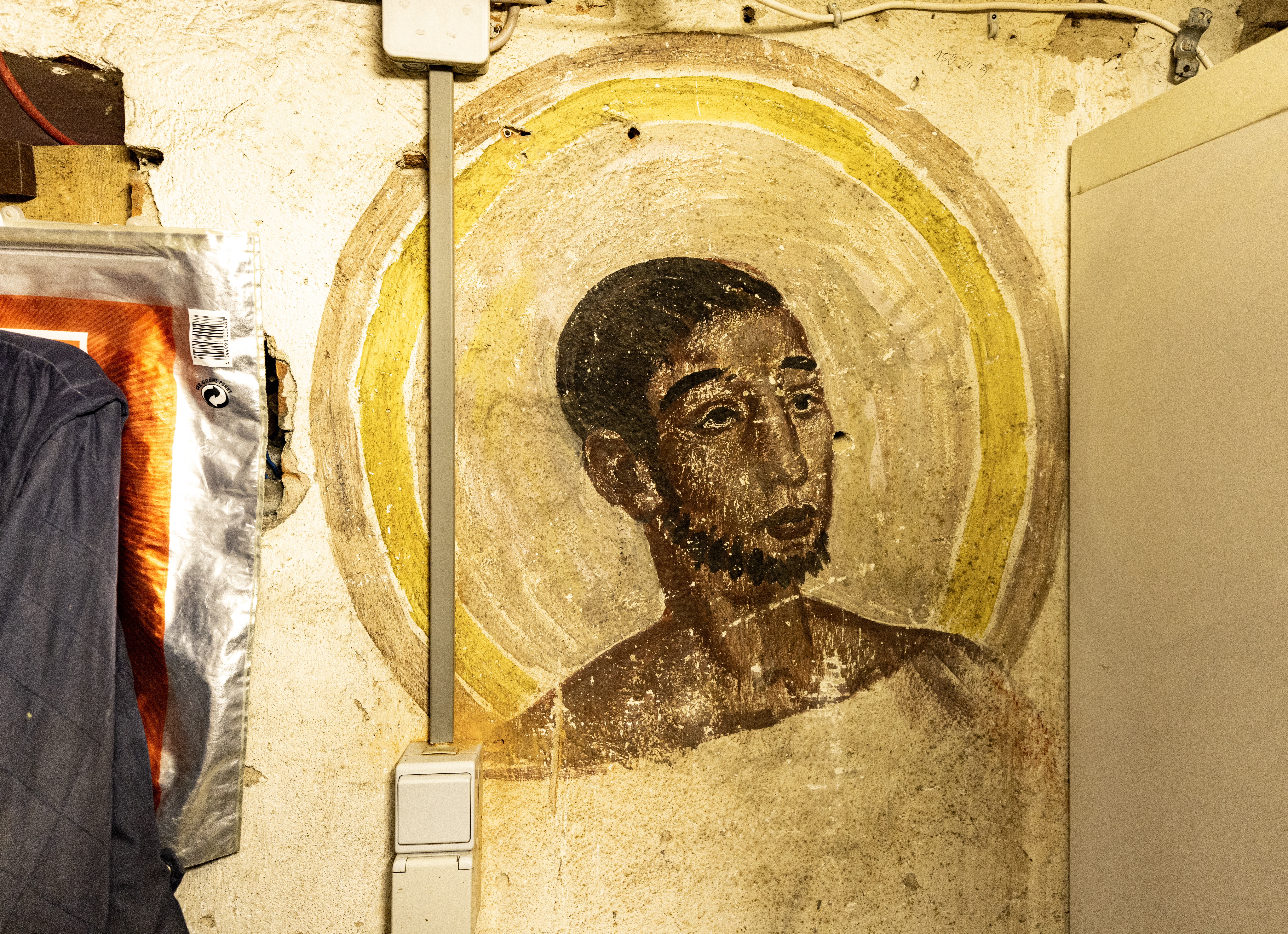 | Beschreibung | Zeichnungen zu Studienzwecken im Keller eines Wohnhauses für das später am Klinikum Fürth in der Kapelle entstandene Wandgemälde in der Kapelle - hier mit dem Gesicht eines der Apostels, Mai 2022 | ||
