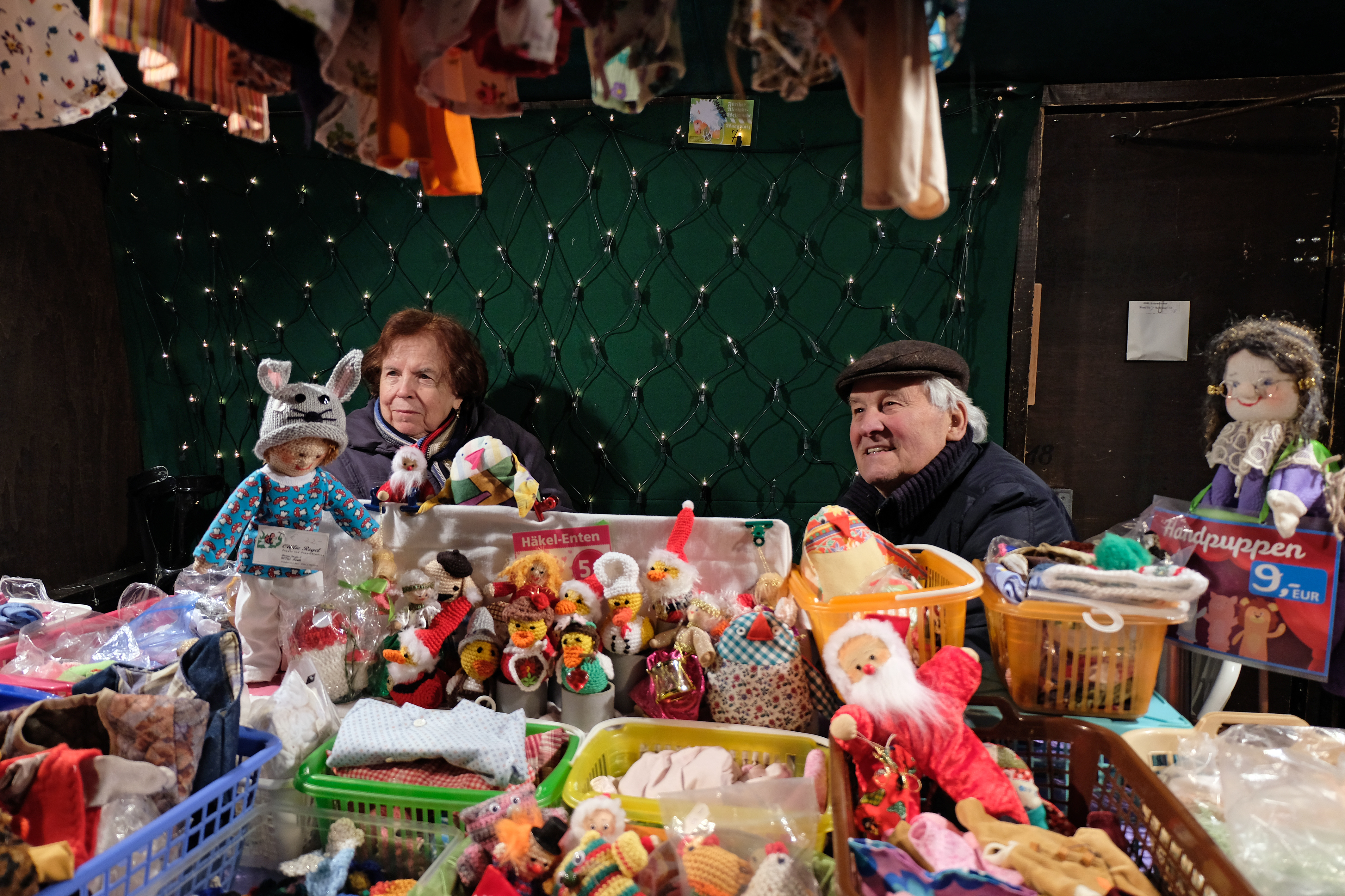 | Beschreibung | Herbert Regel mit Frau Otilie im Handpuppenstand am Altstadtweihnachtsmarkt, 2018 | ||