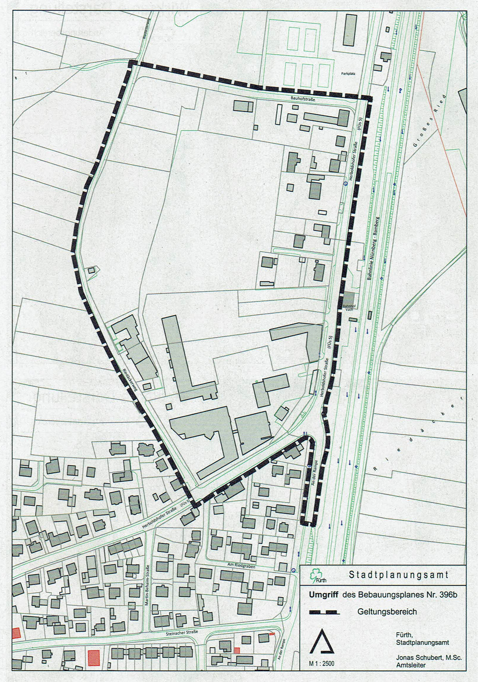 | Beschreibung | Räumlicher Geltungsbereich von Bebauungsplan 396 b im Fürther Amtsblatt von März 2021 | ||