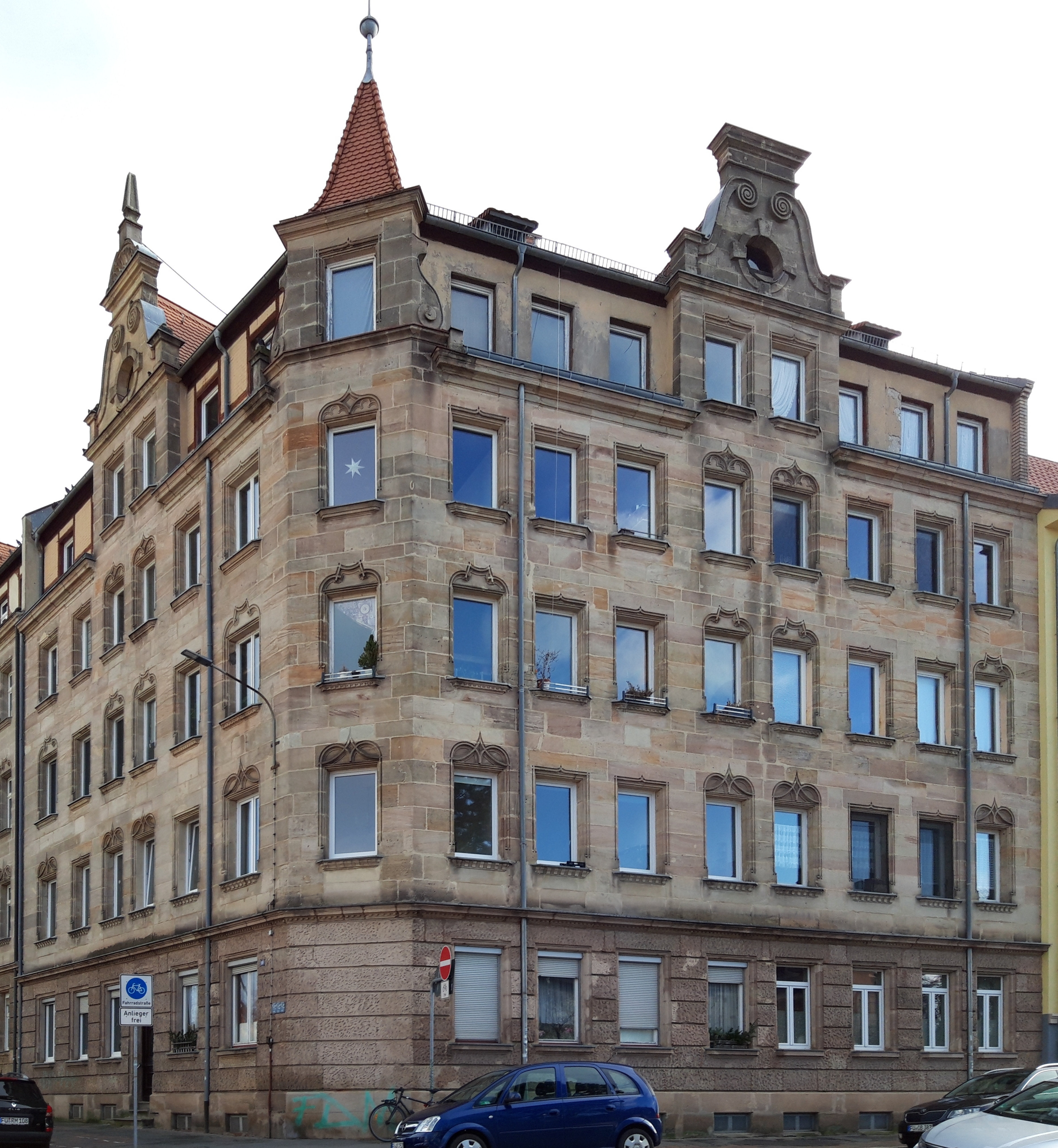 | Beschreibung | Fassade Eckhaus Herrnstraße links und rechts Neumannstraße, Dez. 2023 | ||