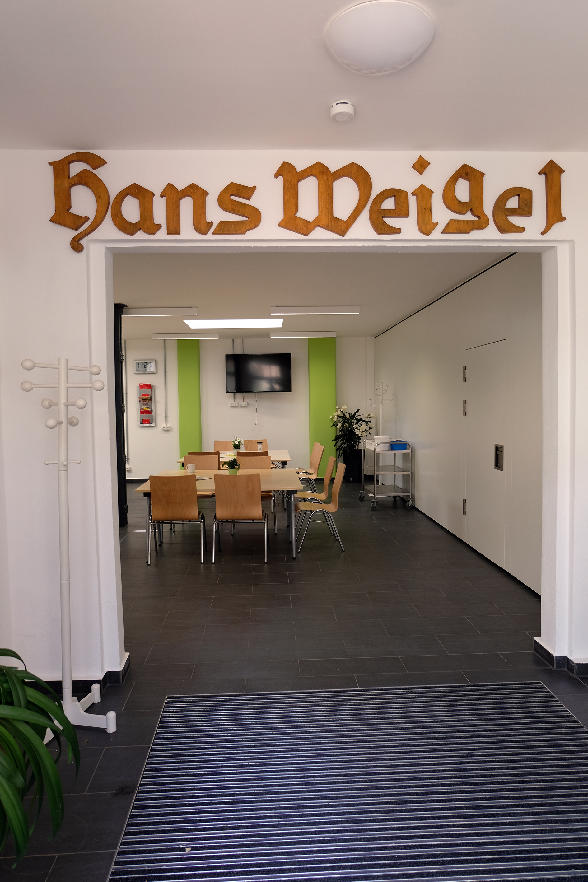 | Beschreibung | Eingang zur Wärmestube, erkennbar sind noch Reste der ehem. Nutzung als Schreinerei Weigel in der Hirschenstraße 37, 2018 | ||
