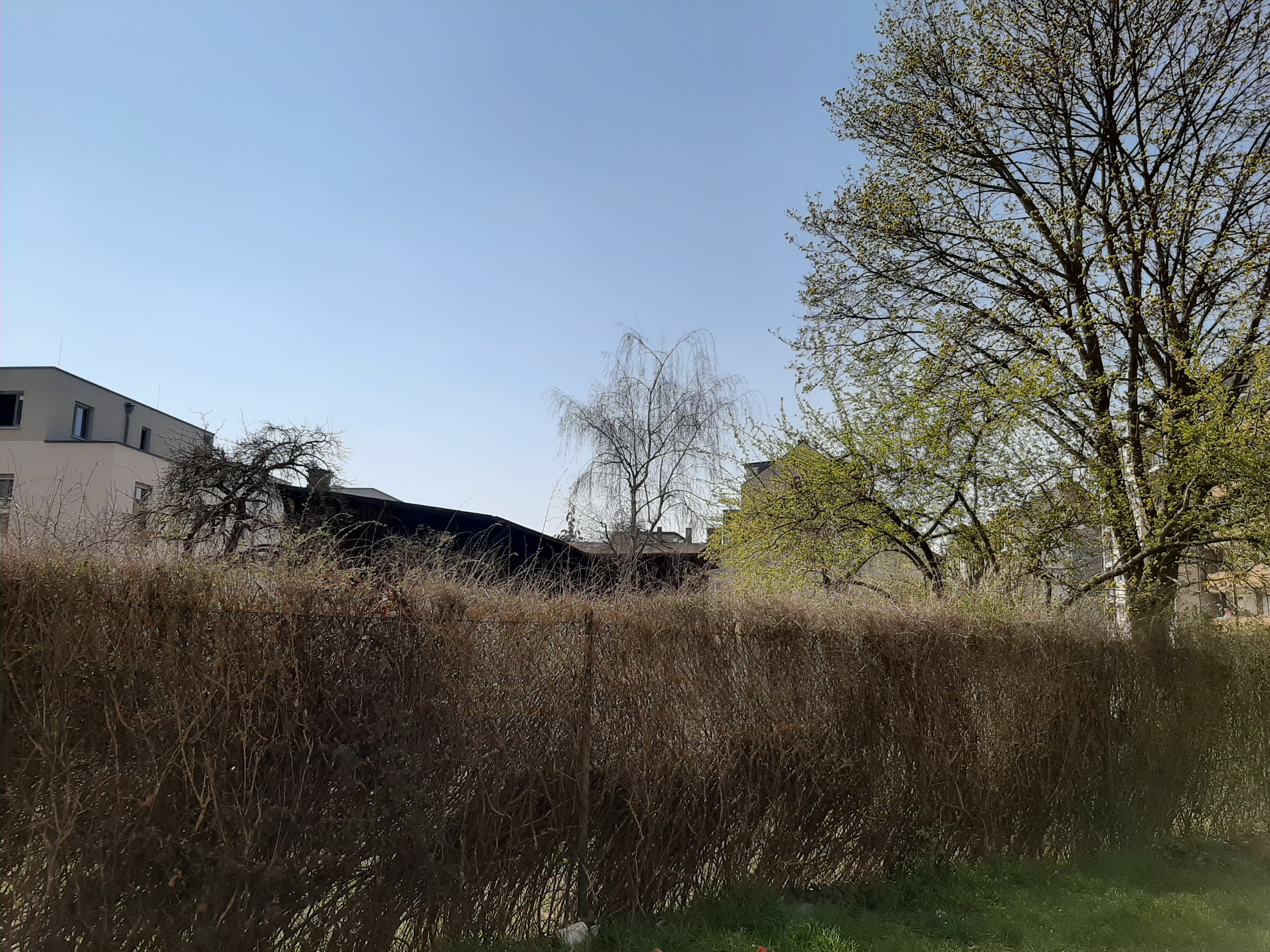 | Beschreibung | Gartengrundstück Holzstr. 52 von der Simonstraße aus gesehen – Schnappschuss im April 2020 | ||