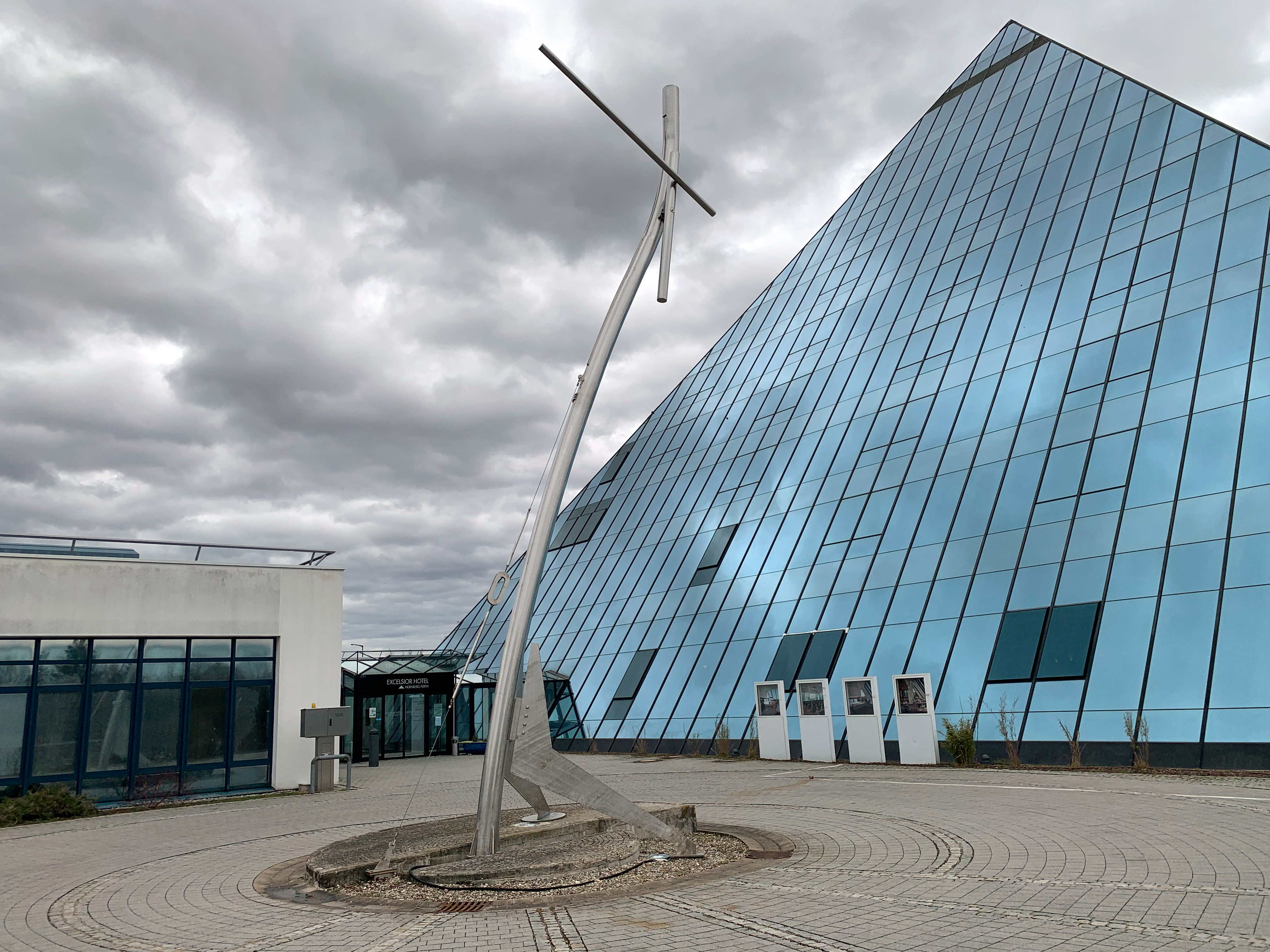 | Beschreibung | Eingang zur Hotel-Pyramide in der Südtstadt mit Kunstinstallation, Mrz. 2021 | ||
