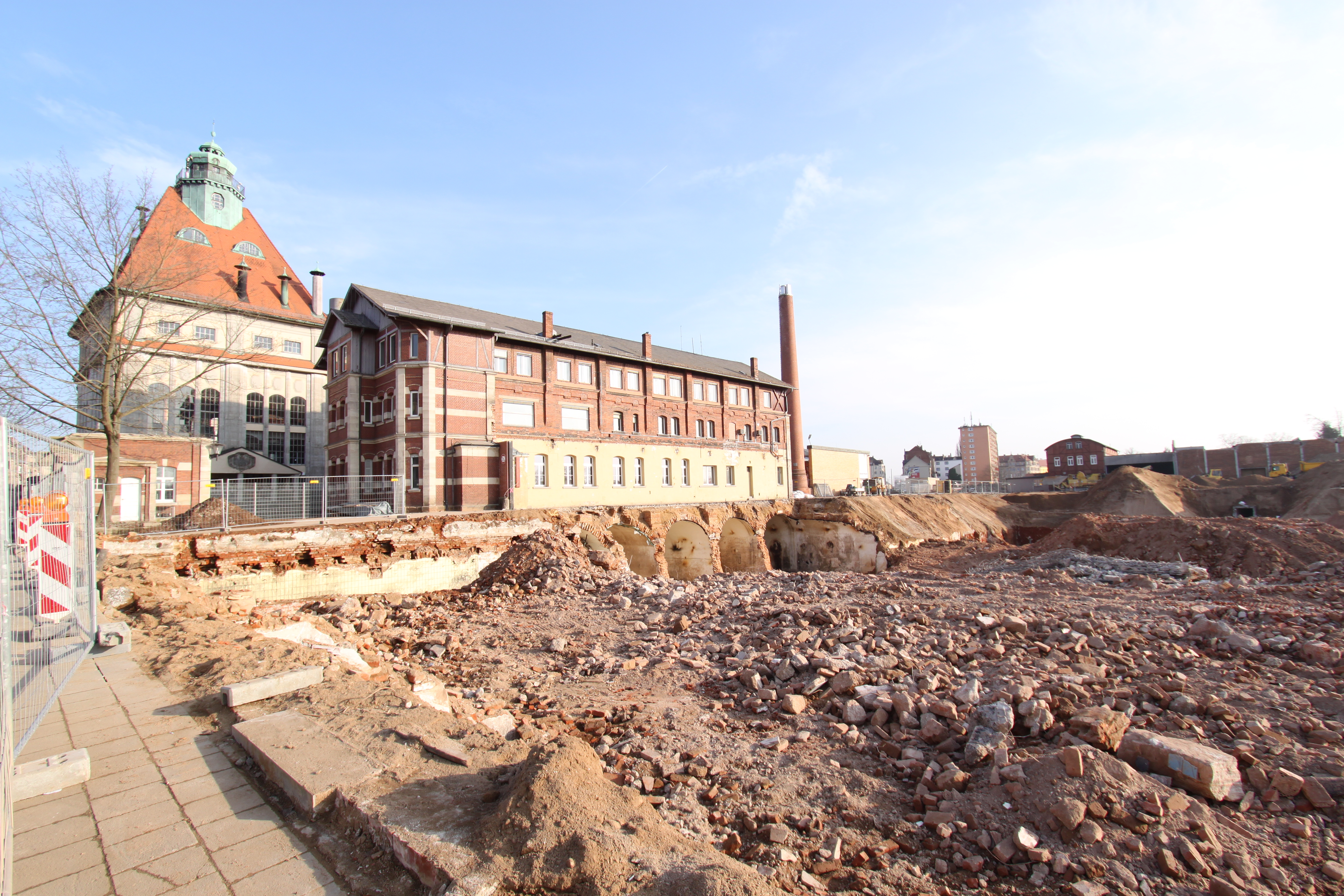 | Beschreibung | Nach dem Abbruch u.a. des Gärhauses an der Fichtenstraße. Etwa in Bildmitte sind noch die später zugemauerten Lagerkeller unter der heutigen Immobilie Malzböden zu sehen | ||