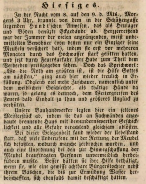 | Beschreibung | In der Schützengasse hat es gebrannt, Dezember 1845 | ||