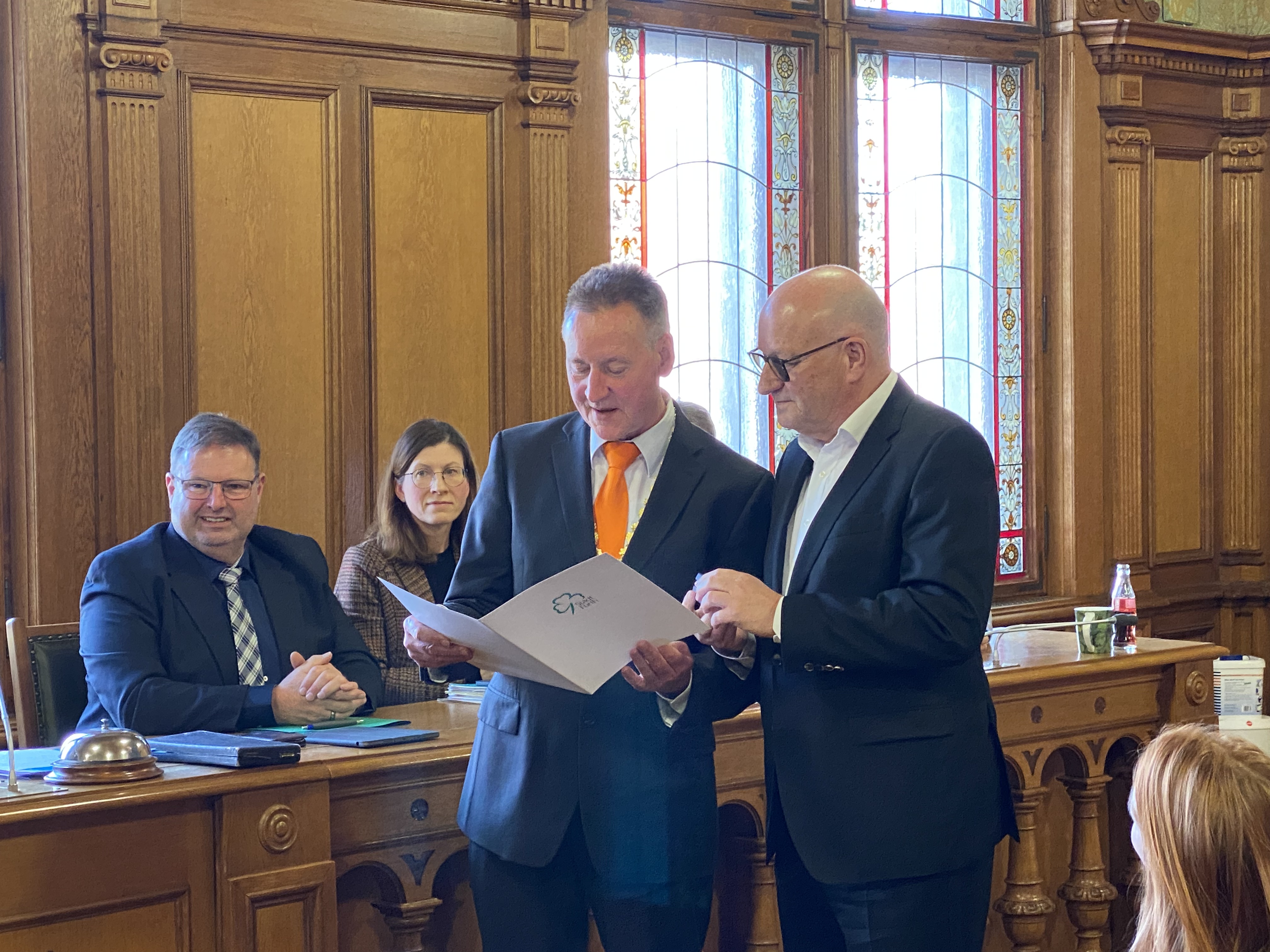 | Beschreibung | Verleihung des Goldene Kleeblatts an Klaus Hunneshagen durch Oberbürgermeister Thomas Jung | ||