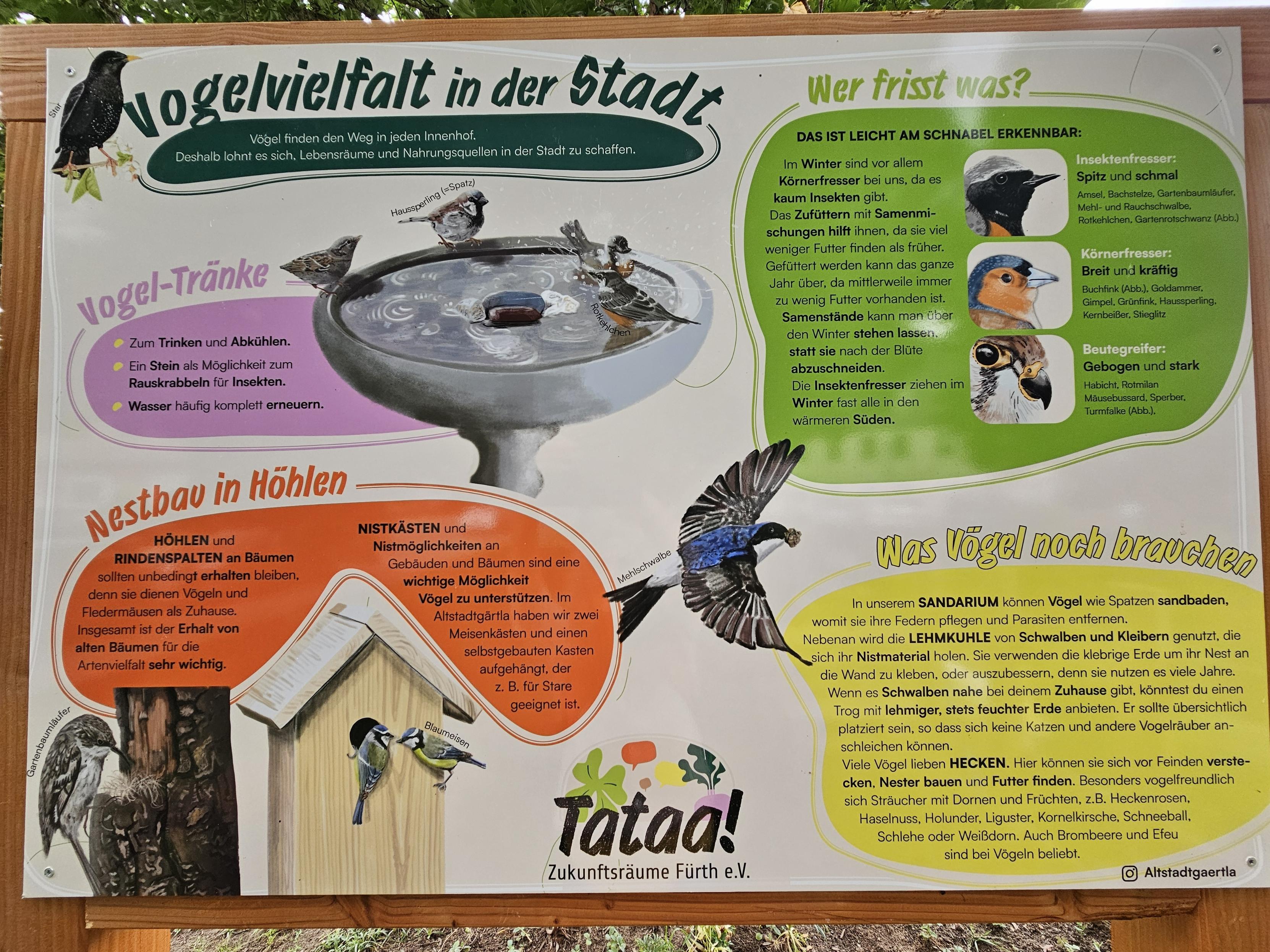 | Beschreibung | Infotafel Vögel im Altstadtgärtla Juni 2025 | ||