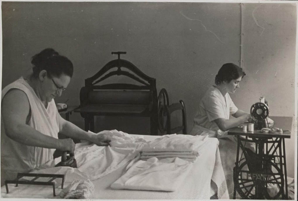 | Dateiinfo (Bild-Unterschrift und Info-Box, automatisch erstellt) | israelitisches Hospital, Bügelzimmer 1936 Urheber: Babette Treumann<br><br>Lizenz: CC BY-NC-SA 3.0 | ||