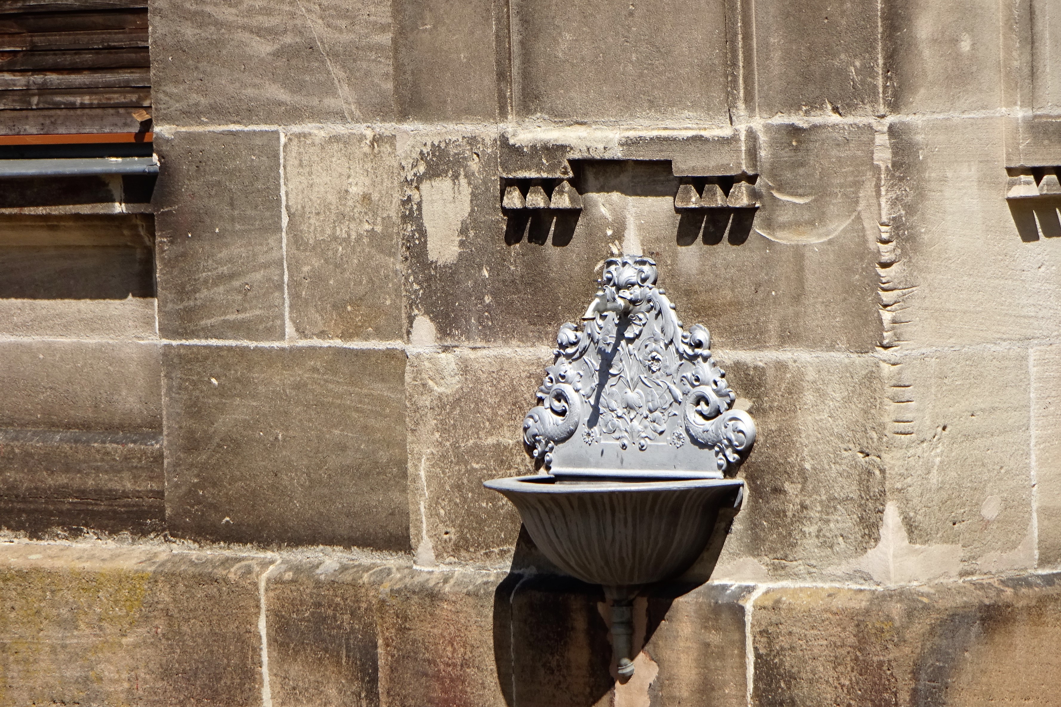 | Beschreibung | Neuer israelischer Friedhof, Leichen- und Wartehalle Rückseite an der Erlanger Straße 99. Mit einem Gefäß mit 2 Griffen übergießen sich hier beim hinausgehen vom Friedhof gläubige Juden die Hände wegen der kultischen Verunreinigung. Allerdings fehlen die Gefäße samt Ketten hier bereits seit längerem. | ||