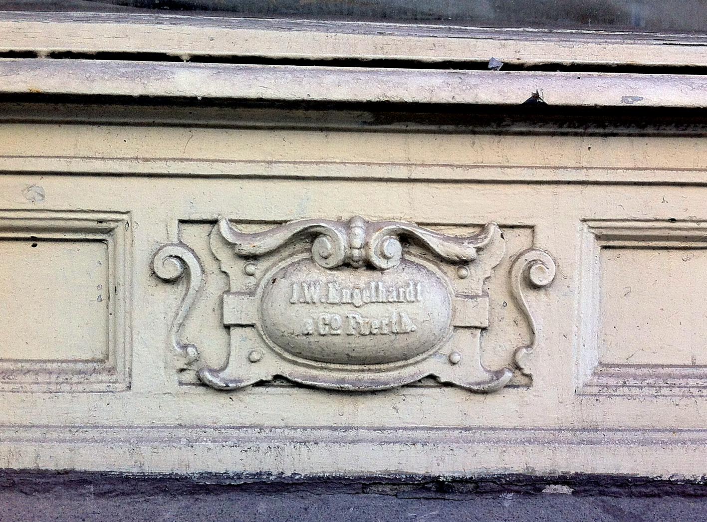 | Beschreibung | Geschäftsfenster Rahmen aus Metall mit Werbung der Fa. J.W. Engelhardt - gesehen in der Hirschenstraße 14 am 28. Mai 2013. 2016 saniert | ||