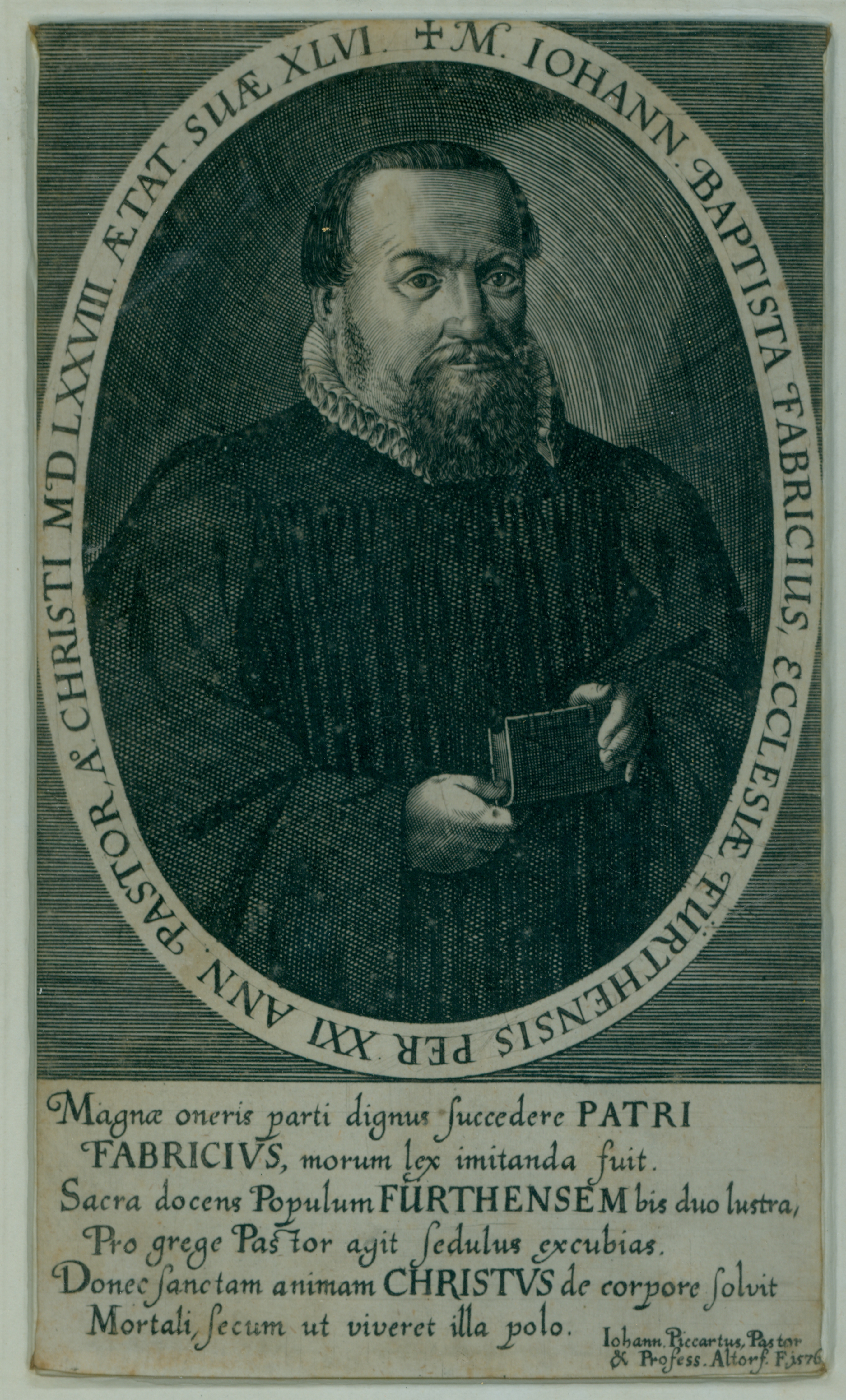 | Beschreibung | Portrait Fabricius, (Holzstich von Johann Piccartus, Pastor & Professor in Altdorf, 1576) | ||
