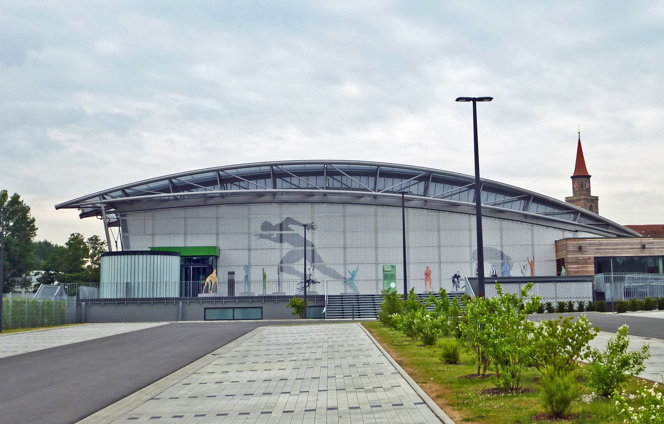 | Beschreibung | Julius-Hirsch-Sportzentrum mit Ausstellung 'Zwischen Erfolg und Verfolgung' zu jüdischen Stars im deutschen Sport, 2017 | ||