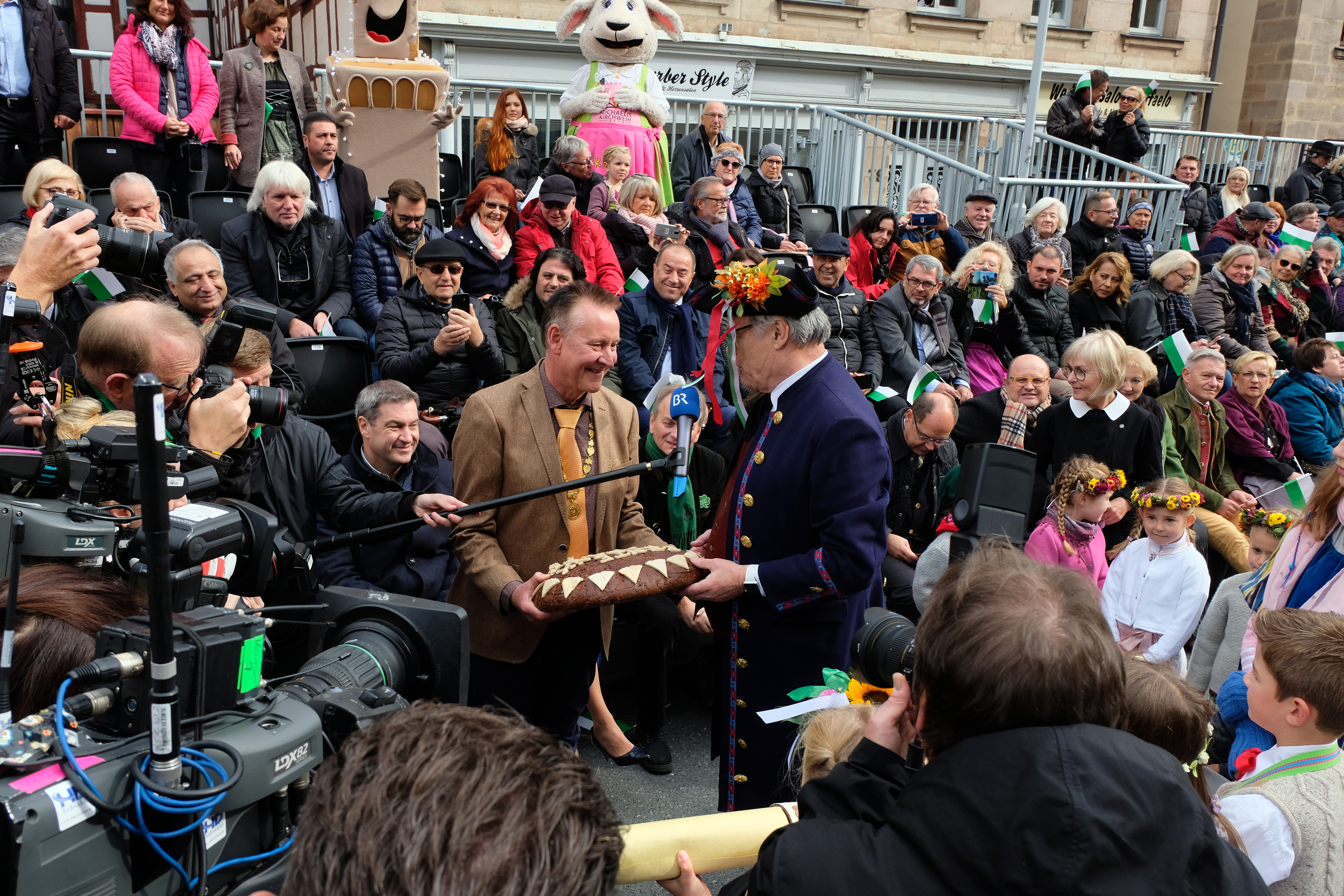 | Beschreibung | Traditionelle Übergabe des Brotlaibes von der Theatergruppe Bühne Erholung e. V. an den Oberbürgermeister Dr. Thomas Jung am Bauernsonntag, Okt. 2019 | ||
