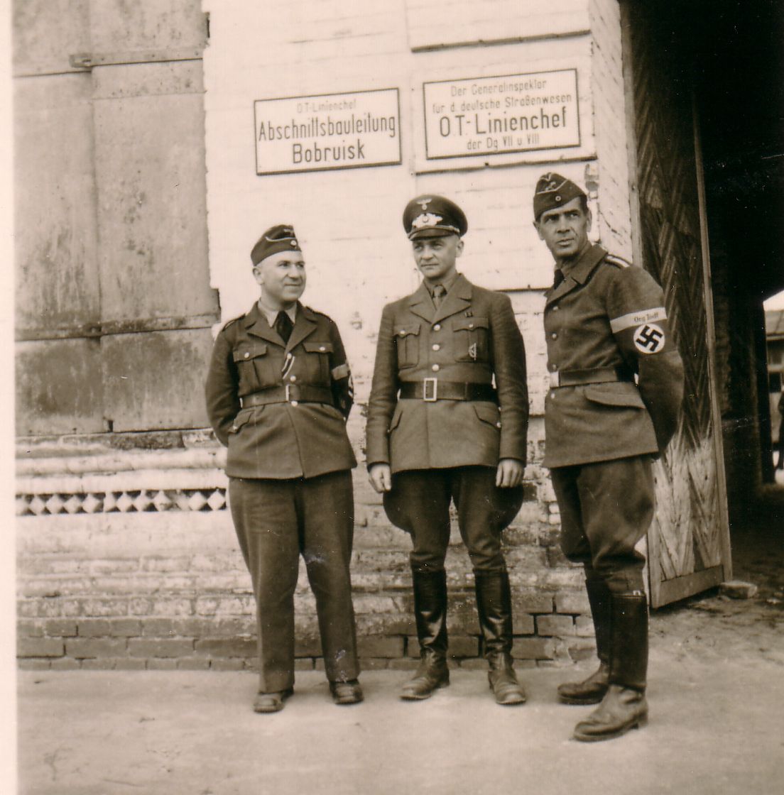 | Beschreibung | Bobruisk in Weißrussland Juni 1942, OT-Mitarbeiter Wilhelm Frank, Mitte | ||