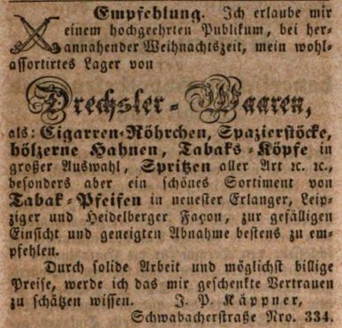 | Beschreibung | Werbeannonce des Drechslers Johann Peter Käppner, Dezember 1844 | ||