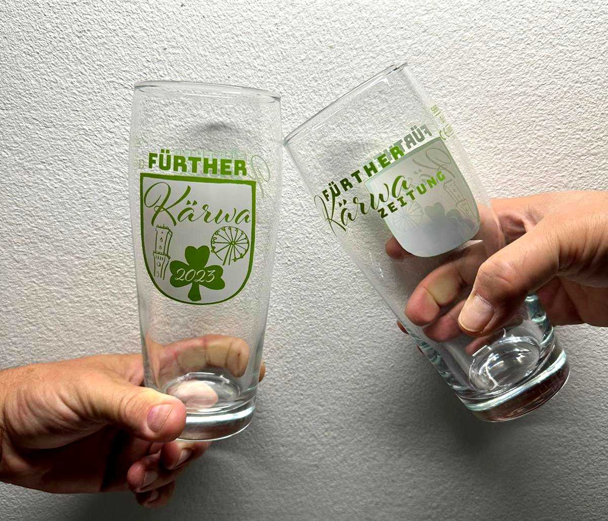 | Beschreibung | Das Jahresglas der Fürther Kärwazeitung in Form eines sog. „Willibechers“ mit 0,5 l Fassungsvermögen. Erstausgabe 2023, Design: Frank Drechsler | ||