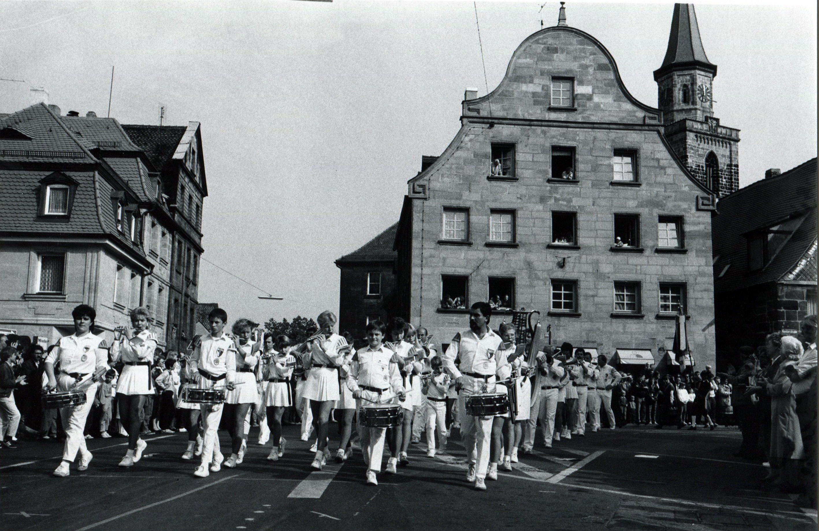 | Beschreibung | Spielmannsumzug zur Fürther Kärwa am Marktplatz, ca. 1985 | ||