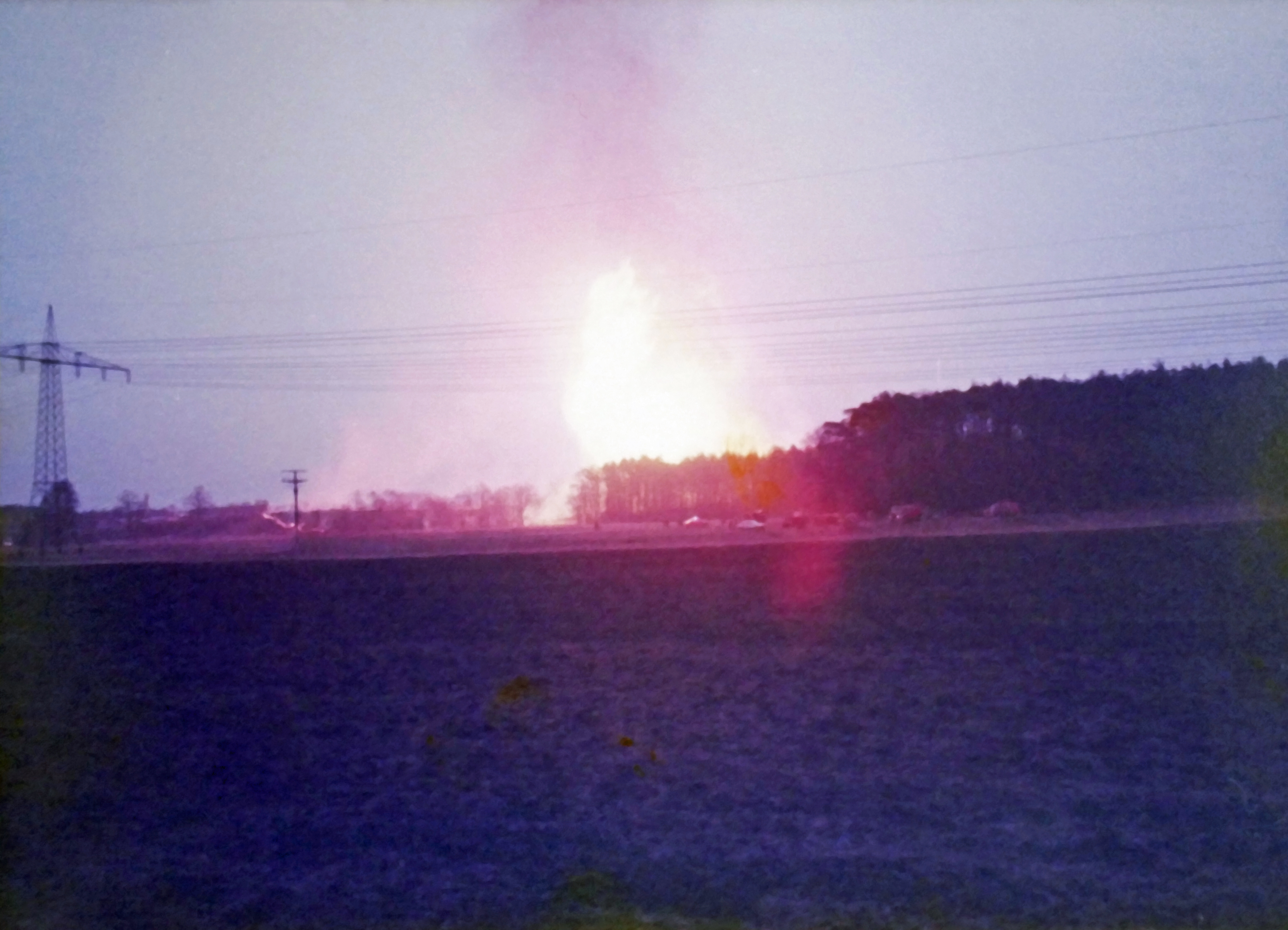 | Beschreibung | Explosion einer Gasfernleitung bei der Königsmühle 1984, vom Wiesengrund an der Regnitz aus gesehen | ||
