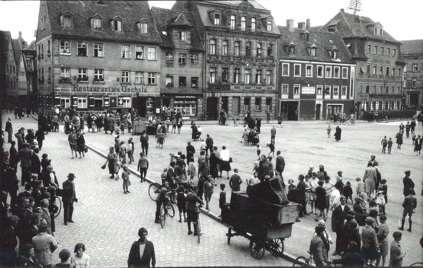 | Beschreibung | Aufnahme vom Königsplatz/ Helmstraße. Im Hintergrund die Gaststätte Zum Öchsla. Neben dem Foto ist handschriftlich vermerkt: Zwangsausmietung. | ||
