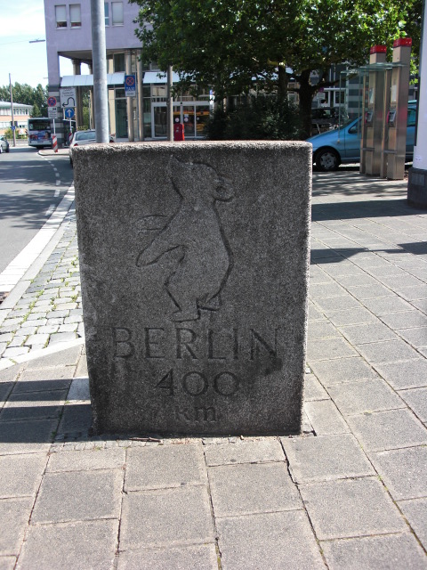 | Beschreibung | Skulptur "Berliner Meilenstein" errichtet aus Stein im Jahr 1957, Juli 2009 | ||