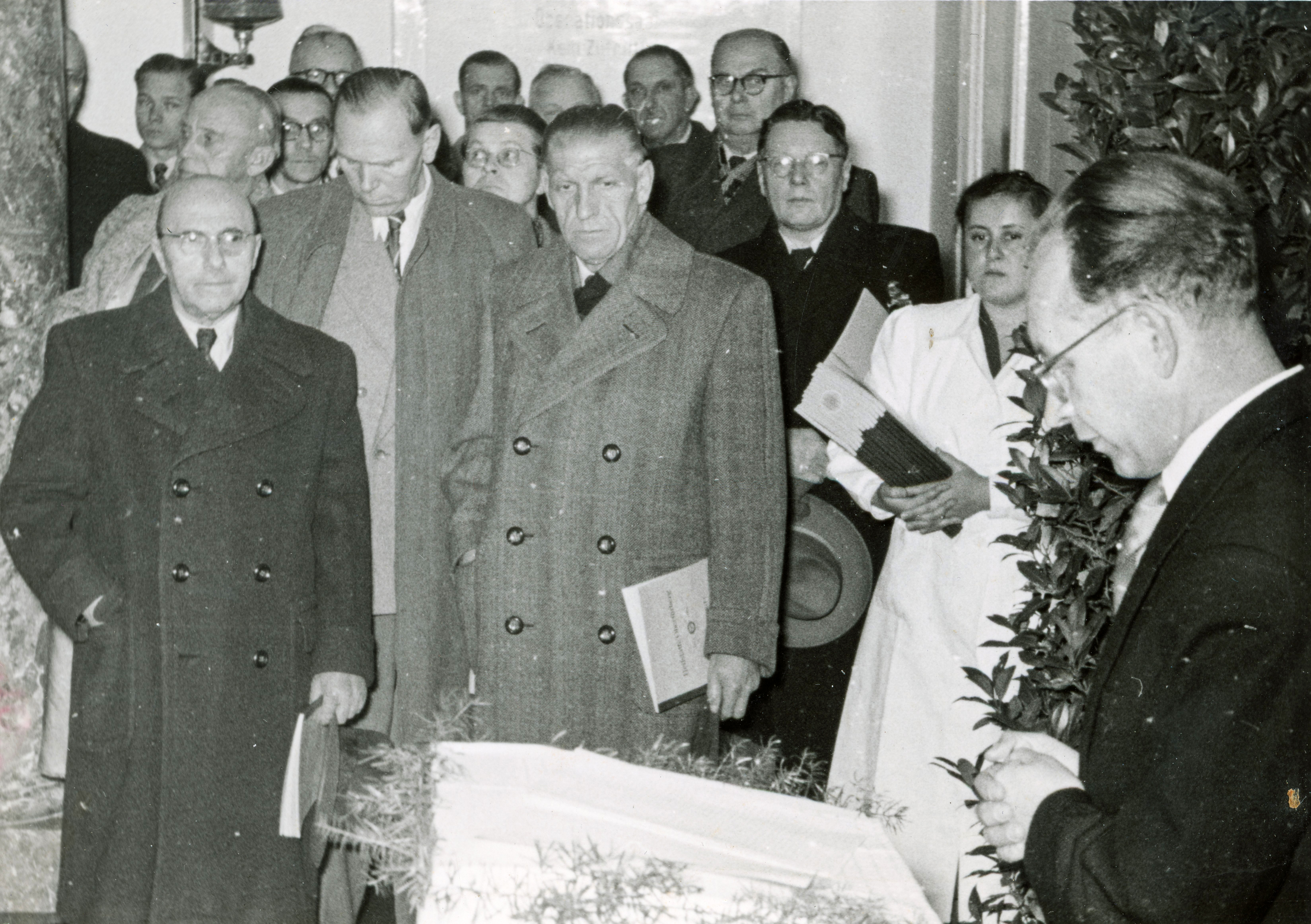 | Beschreibung | Dr. Anton Kaltenhäuser, u.a. mit den Städträten Johann-Adam Segitz und Leo Rosenthal, ca. 1954 | ||
