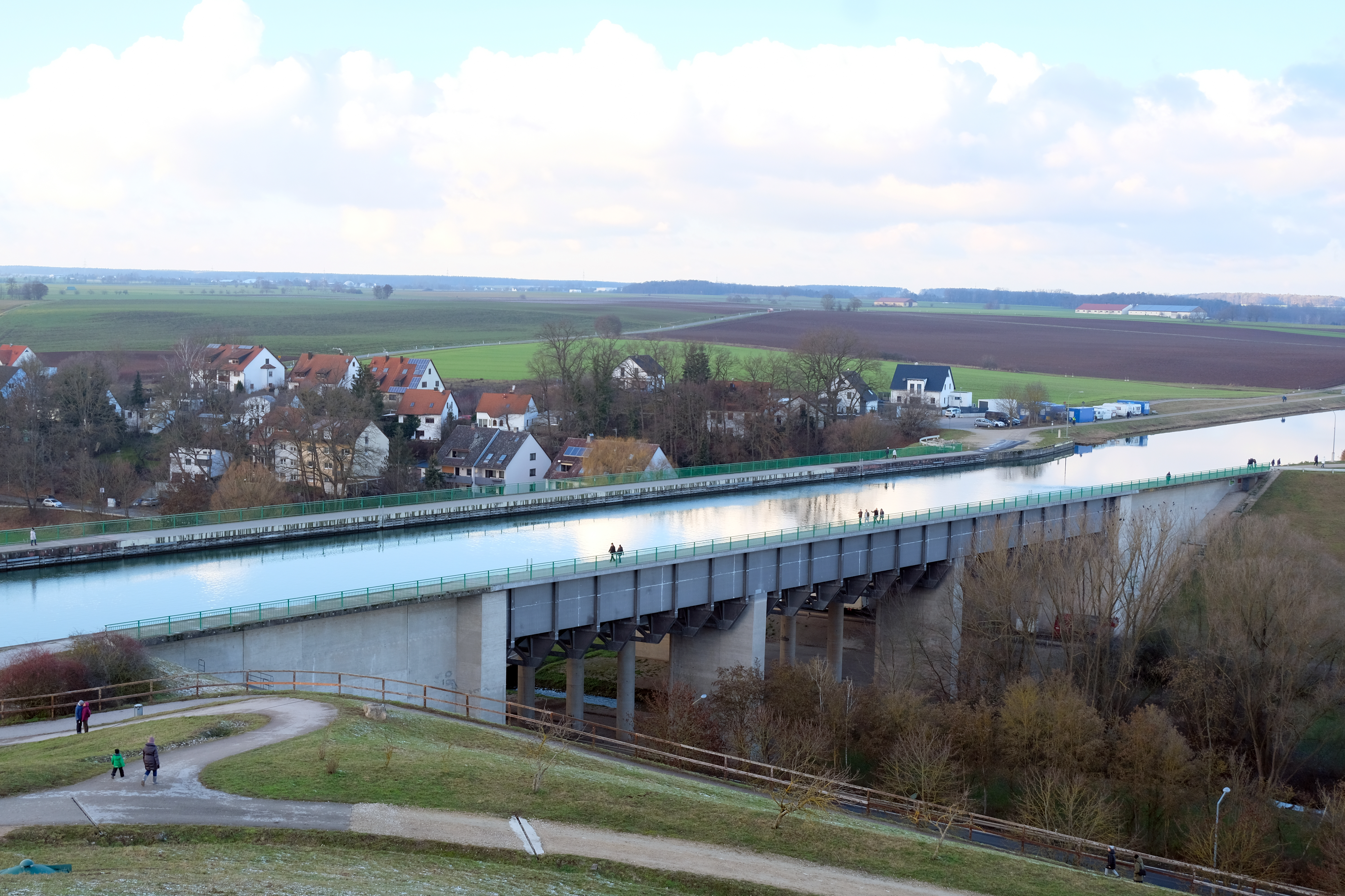 Hinter der Trogbrücke ist Flexdorf zu sehen.