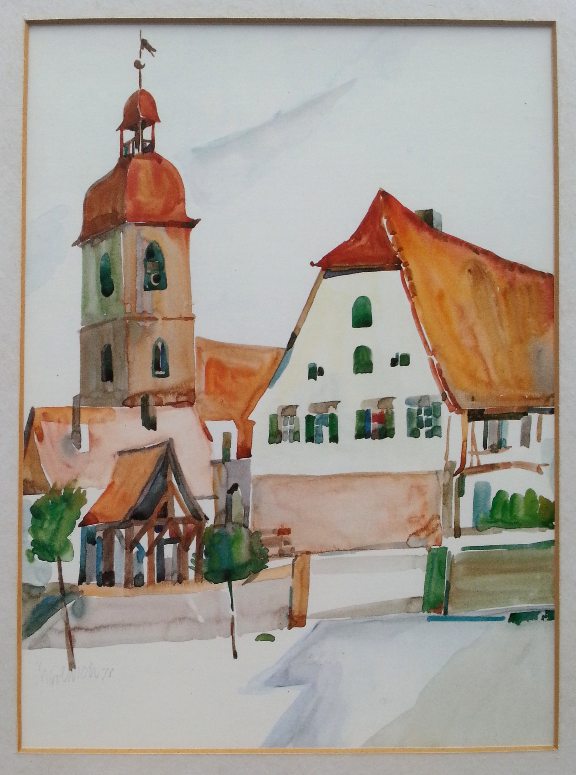 | Beschreibung | Karl-Heinz Wich: "Roßtal", Kunstdruck (im Original Aquarell). Signiert mit CharlWich 78, Kunstmappe des Lions Club Fürth, 1983 | ||