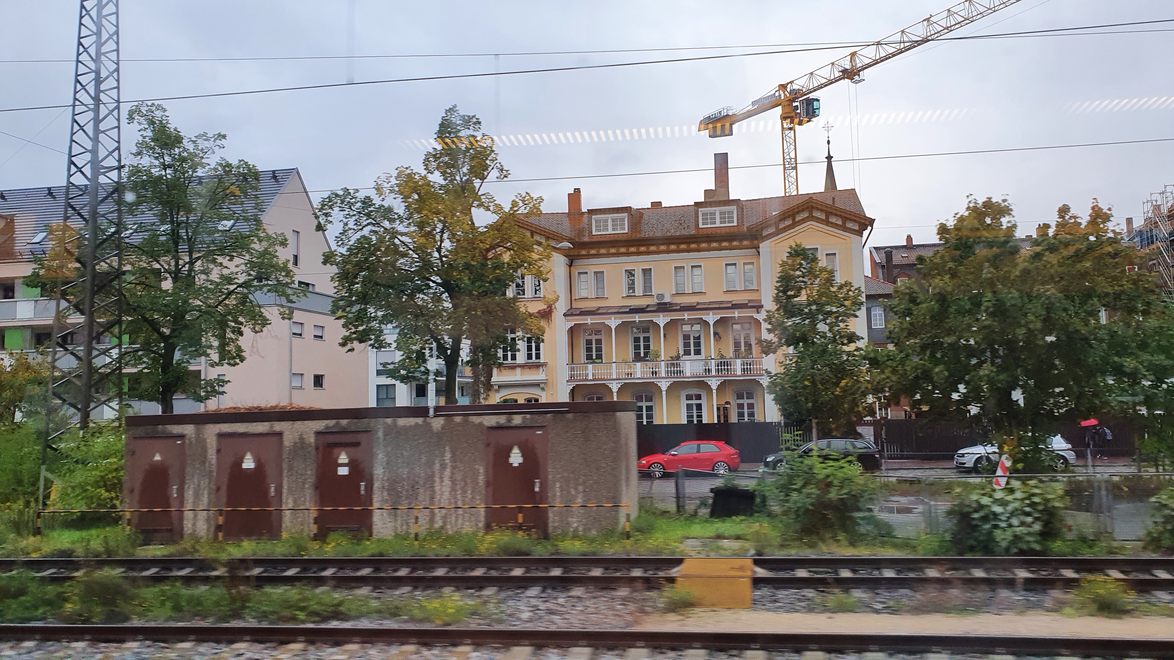 | Beschreibung | Haus Karolinenstraße 64, Ansicht aus einem fahrenden Zug | ||