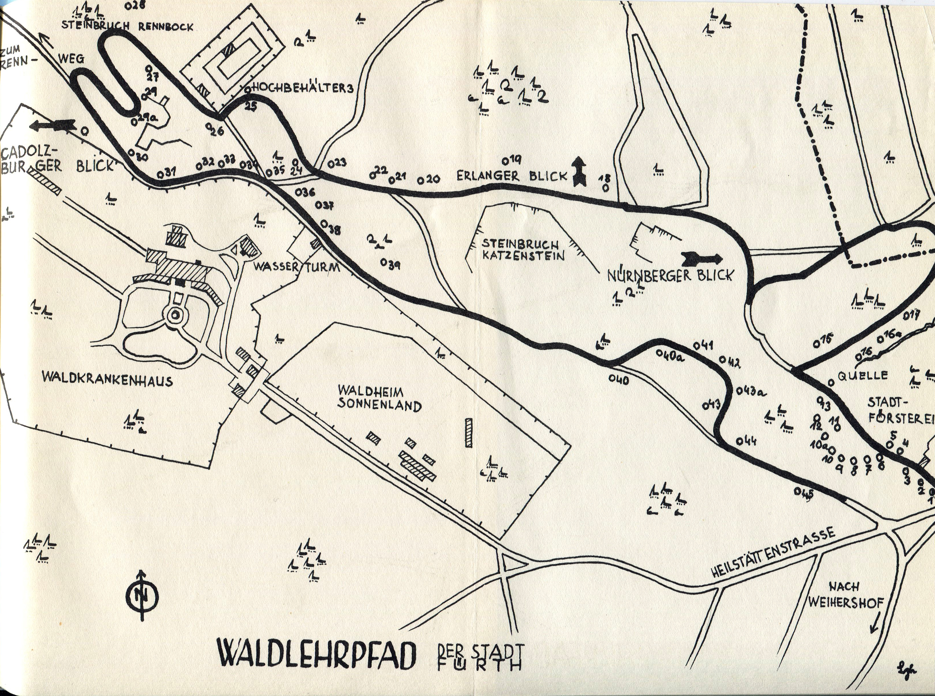 | Dateiinfo (Bild-Unterschrift und Info-Box, automatisch erstellt) | Wanderkarte des Waldlehrpfades im Stadtwald mit den jeweiligen Stationen von 1 bis 45, ca. 1965 Urheber: Stadt Fürth<br><br>Lizenz: CC BY-SA 3.0 | ||
