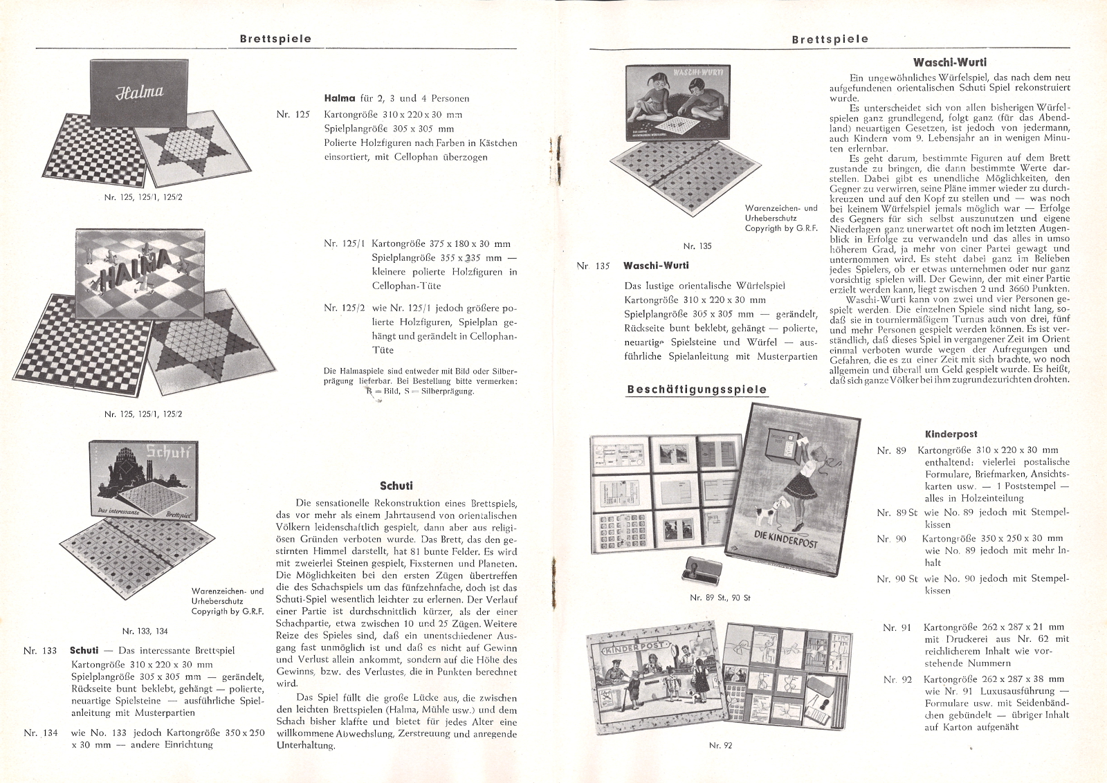 | Beschreibung | Produktkatalog der Fa. Noris-Spiele, Seite 8 u. 9, ca. 1955 | ||