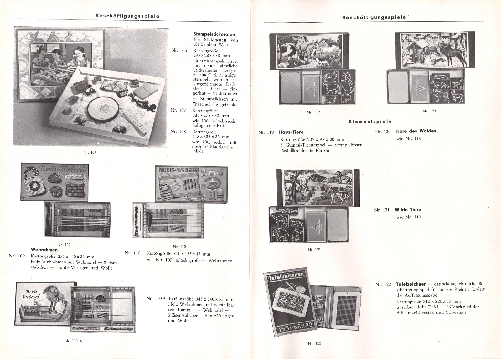 | Beschreibung | Produktkatalog der Fa. Noris-Spiele, Seite 10 u. 11, ca. 1955 | ||