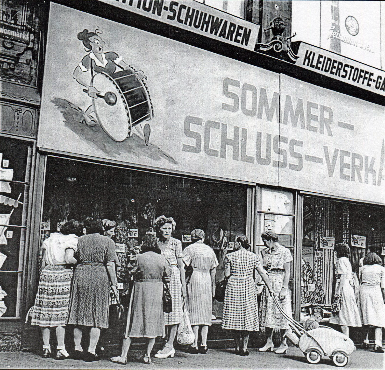 | Dateiinfo (Bild-Unterschrift und Info-Box, automatisch erstellt) | Kaufhaus Tietz am Kohlenmarkt mit Werbung an der Außenfassade, ca. 1950 Urheber: unbekannt<br><br>Lizenz: CC BY-SA 3.0 | ||