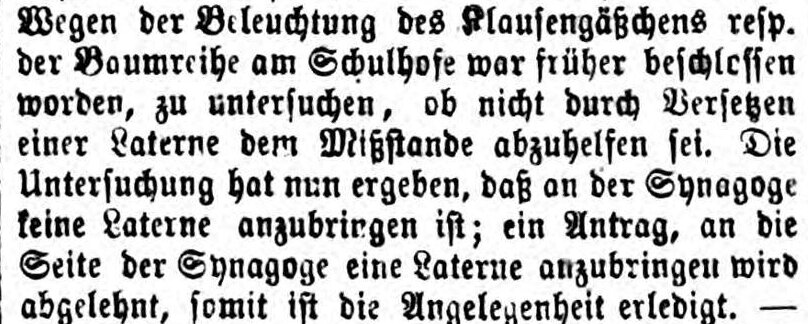 | Datei:Keine Beleuchtung des Klausengässchens, FAZ 06.12.1874.jpg | |||