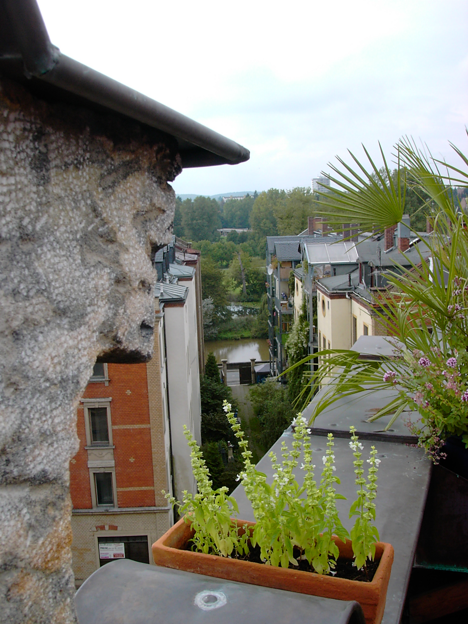 | Beschreibung | Blick von der Dachterrasse Mathildenstraße 48 auf die sog. Kißkalt´schen Häuser, eine Viererzeile von Häusern in Sichtbacksteinbauweise an der Uferpromenade, benannt nach dem Fürther Baumeister Georg Kißkalt | ||