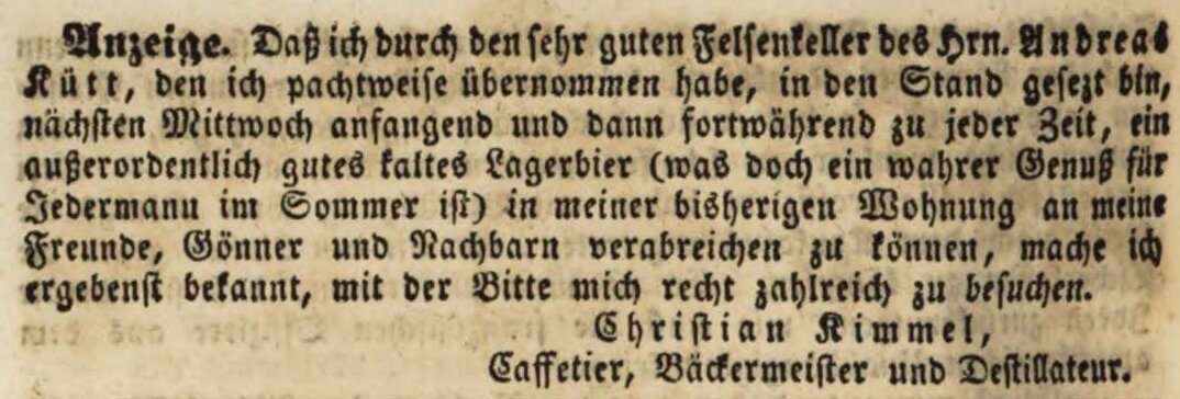 | Dateiinfo (Bild-Unterschrift und Info-Box, automatisch erstellt) | Der Wirt Christian Kimmel pachtet den Felsenkeller von Andreas Kütt, Juni 1842 Lizenz: NoC-NC 1.0 | ||