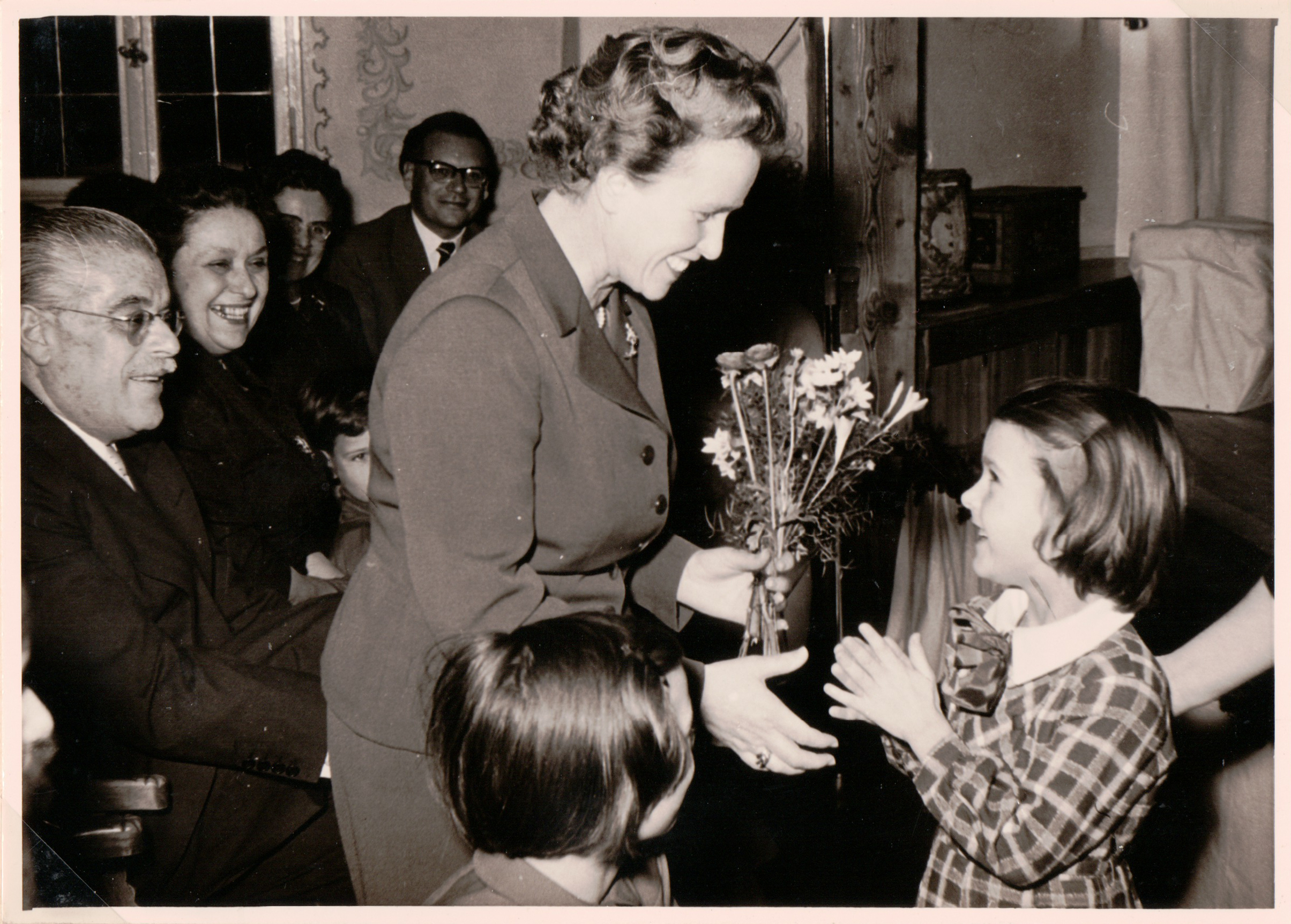 | Beschreibung | Weihnachtsfeier 1954 im Kinderheim Grete Schickedanz. Im Bild links Gustav Schickedanz, daneben Liesl Kießling und mittig Grete Schickedanz | ||