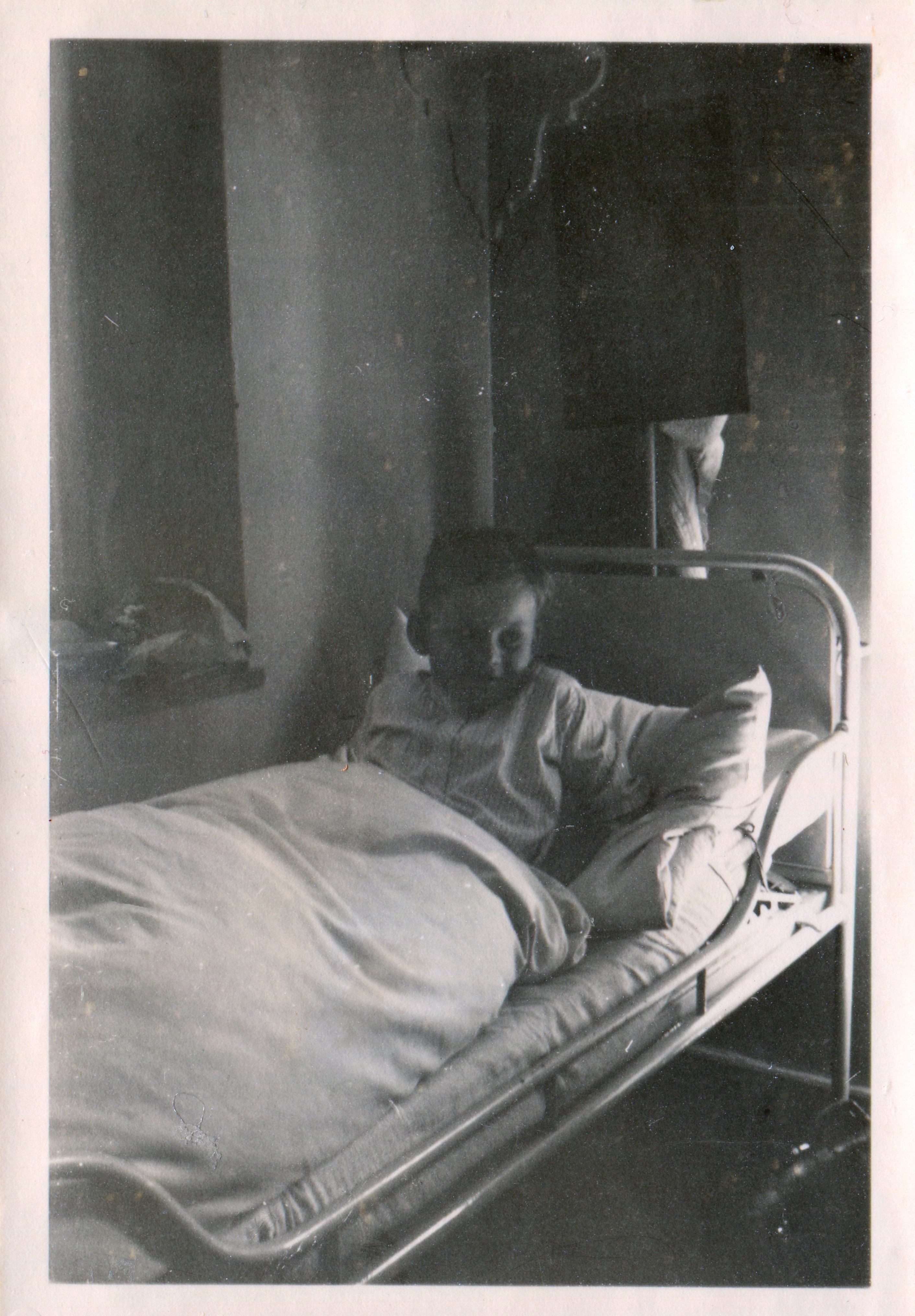 | Beschreibung | Patient Norbert Pietsch 1956 im Kinderspital im 1. Stock. Glasfenster links ist Abtrennung zu der Mädchen Abteilung (rechter Anbau mit den 2 großen Fenstern straßenseitig). Auf der Postkarten Abbildung 1942 gleicher und größerer Blickwinkel der Raumsituation dazu. | ||