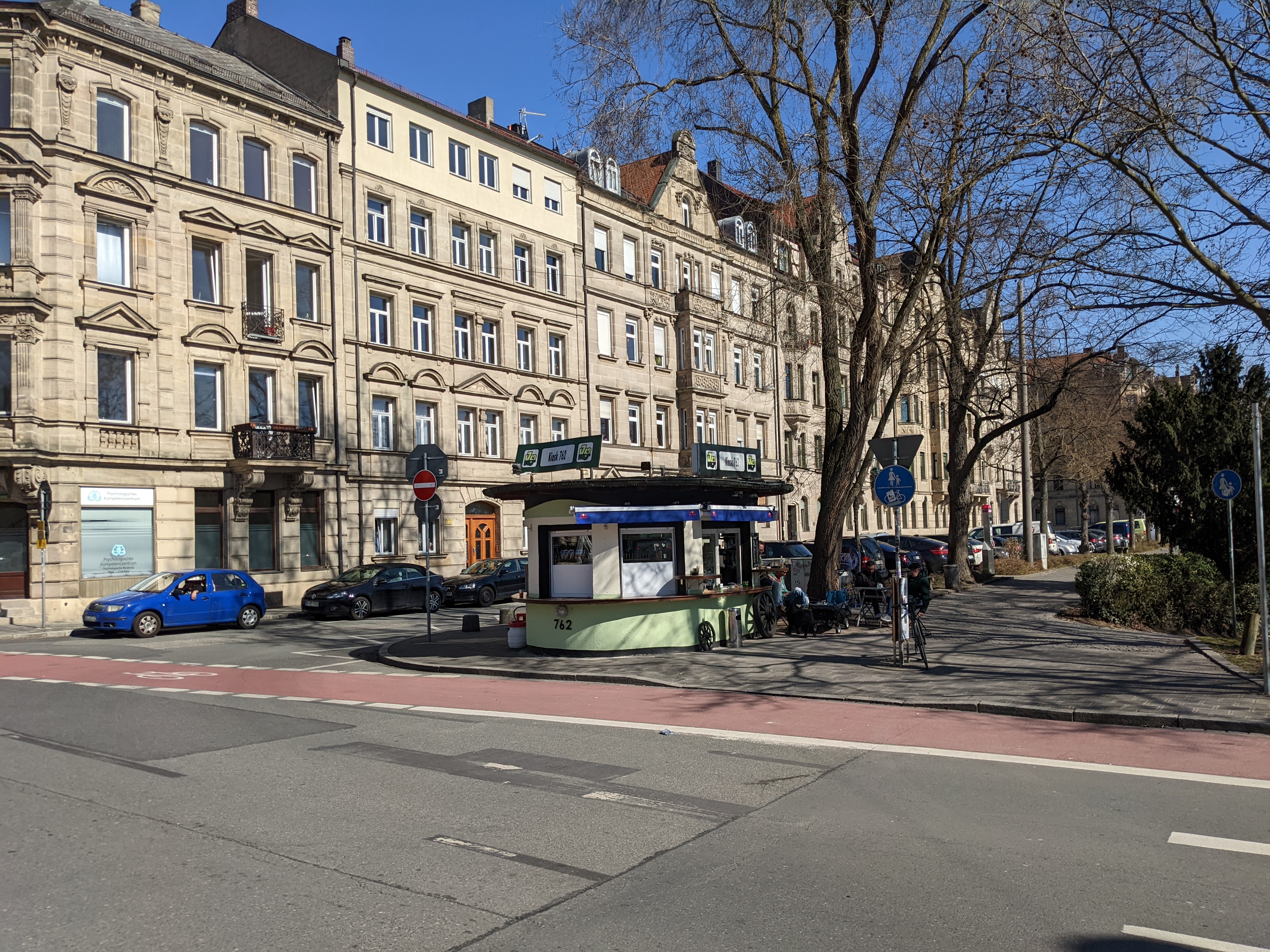 | Beschreibung | Kiosk 762, dahinter v. l. n. r. die Häuser Jakobinenstraße 6, Hornschuchpromenade 22 und Hornschuchpromenade 23, März 2022 | ||
