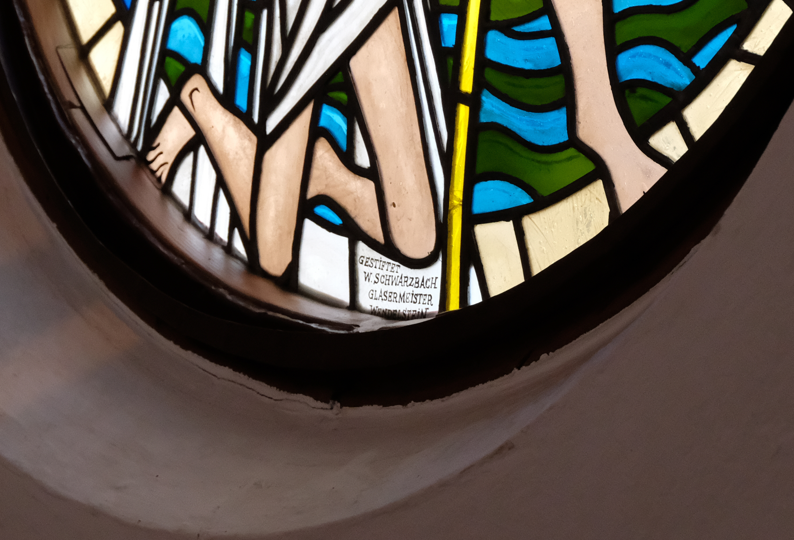 | Beschreibung | Stifter der Kirchenfenster in der Kirche St. Martin auf der Wilhelmshöhe: Gestiftet W. Schwarzbach, Glasermeister Wendelstein, Dez. 2020 | ||