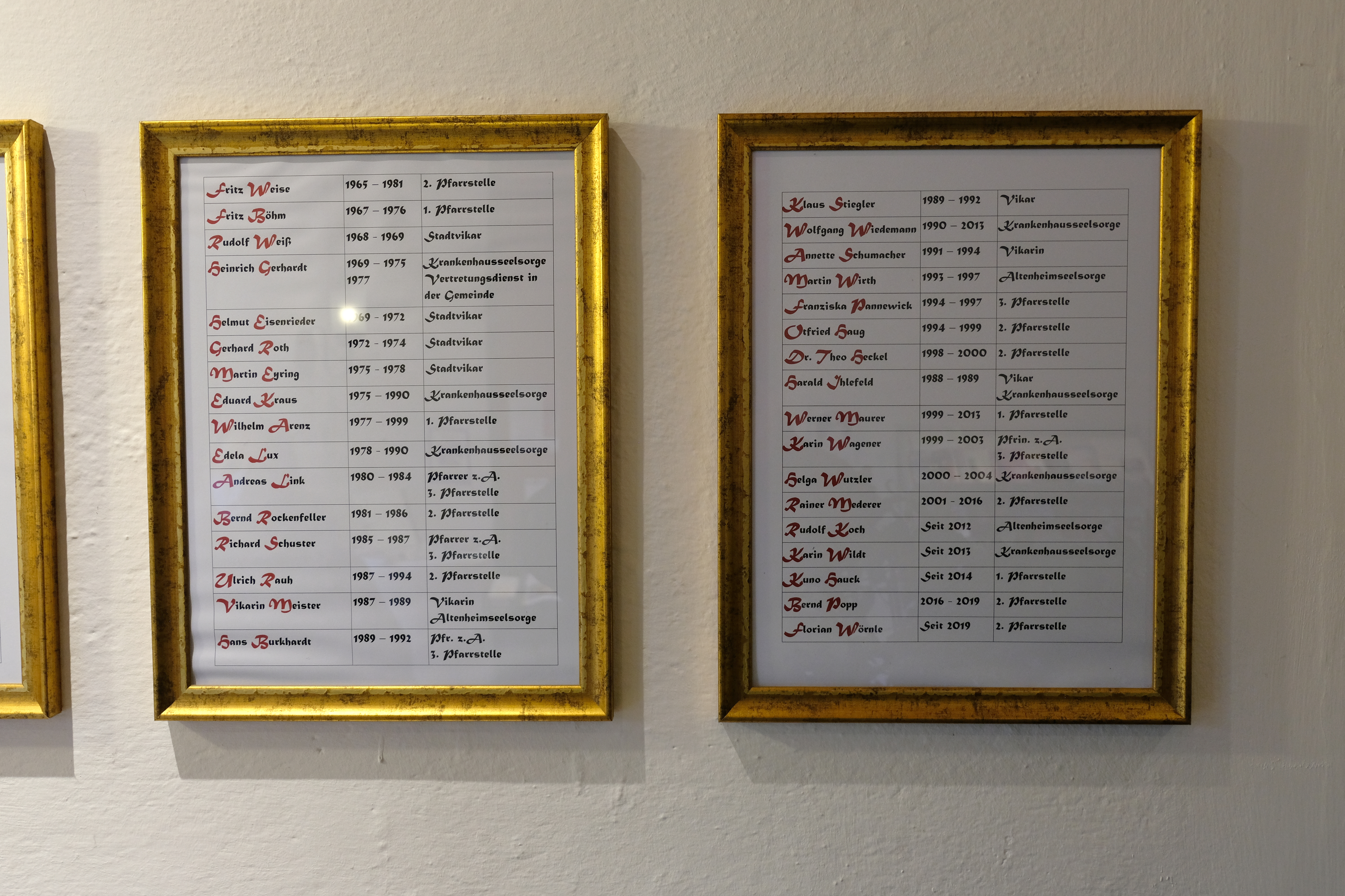 | Dateiinfo (Bild-Unterschrift und Info-Box, automatisch erstellt) | Liste aller Pfarrer*innen und Vikare der Kirche St. Martin auf der Wilhelmshöhe seit 1822, Dez. 2020 Urheber: Kamran Salimi<br><br>Lizenz: CC BY-SA 3.0 | ||
